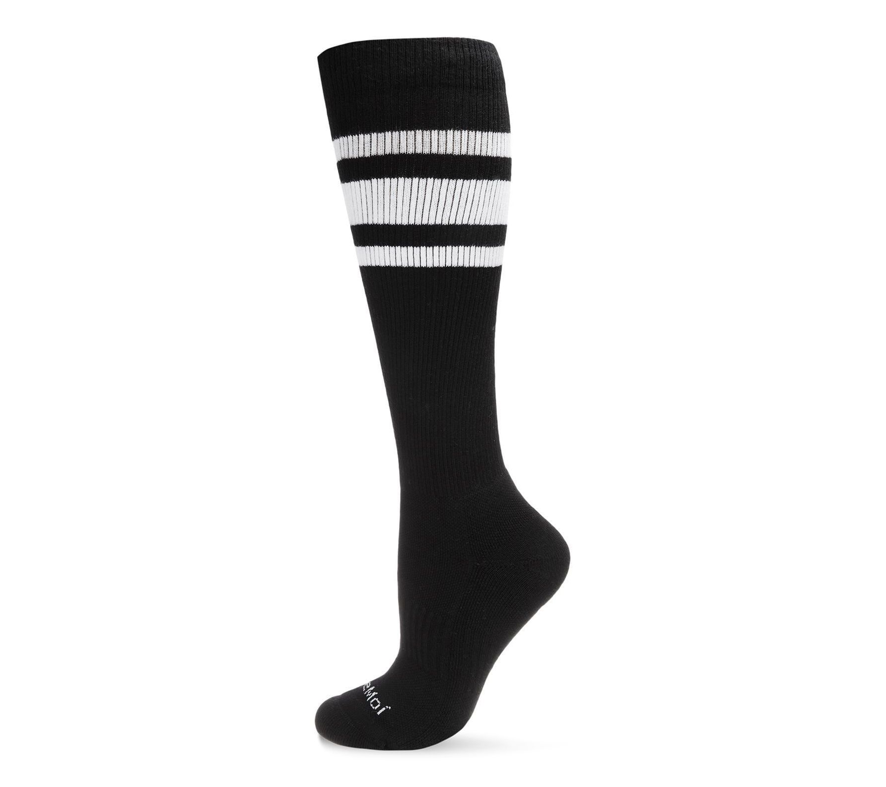 Get ready to elevate your game with Memoi unisex striped athletic cushion compression socks. These knee-high socks feature 15-20mmHg graduated compression to promote blood circulation and provide relief for your legs after a workout. With a soft, cushioned cotton blend and an athletic banded comfort cuff that stays in place, you'll experience ultimate comfort all day long. From Memoi.