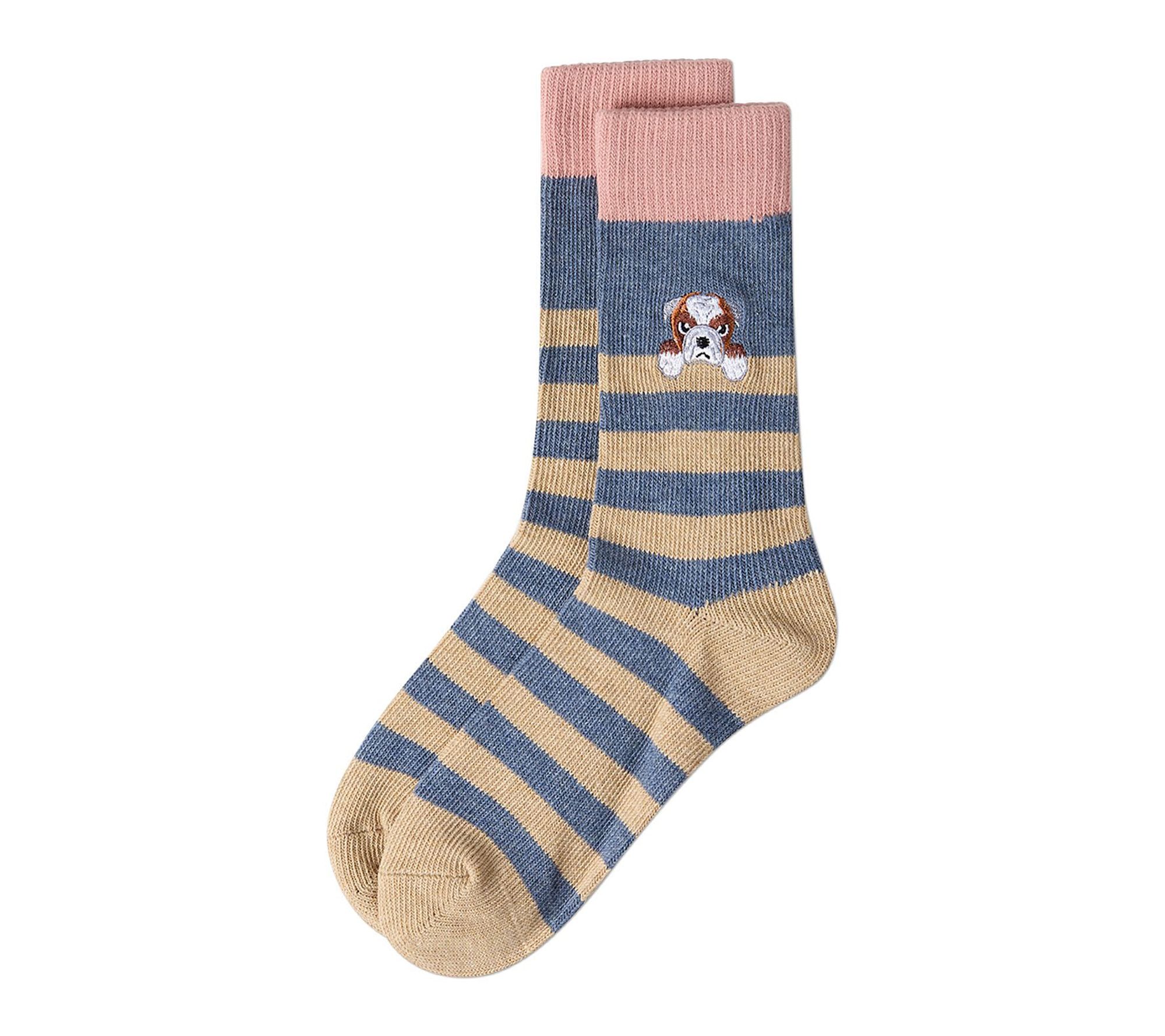 • Features: grumpy animal face embroidery, knit-in stripes, cotton-rich construction