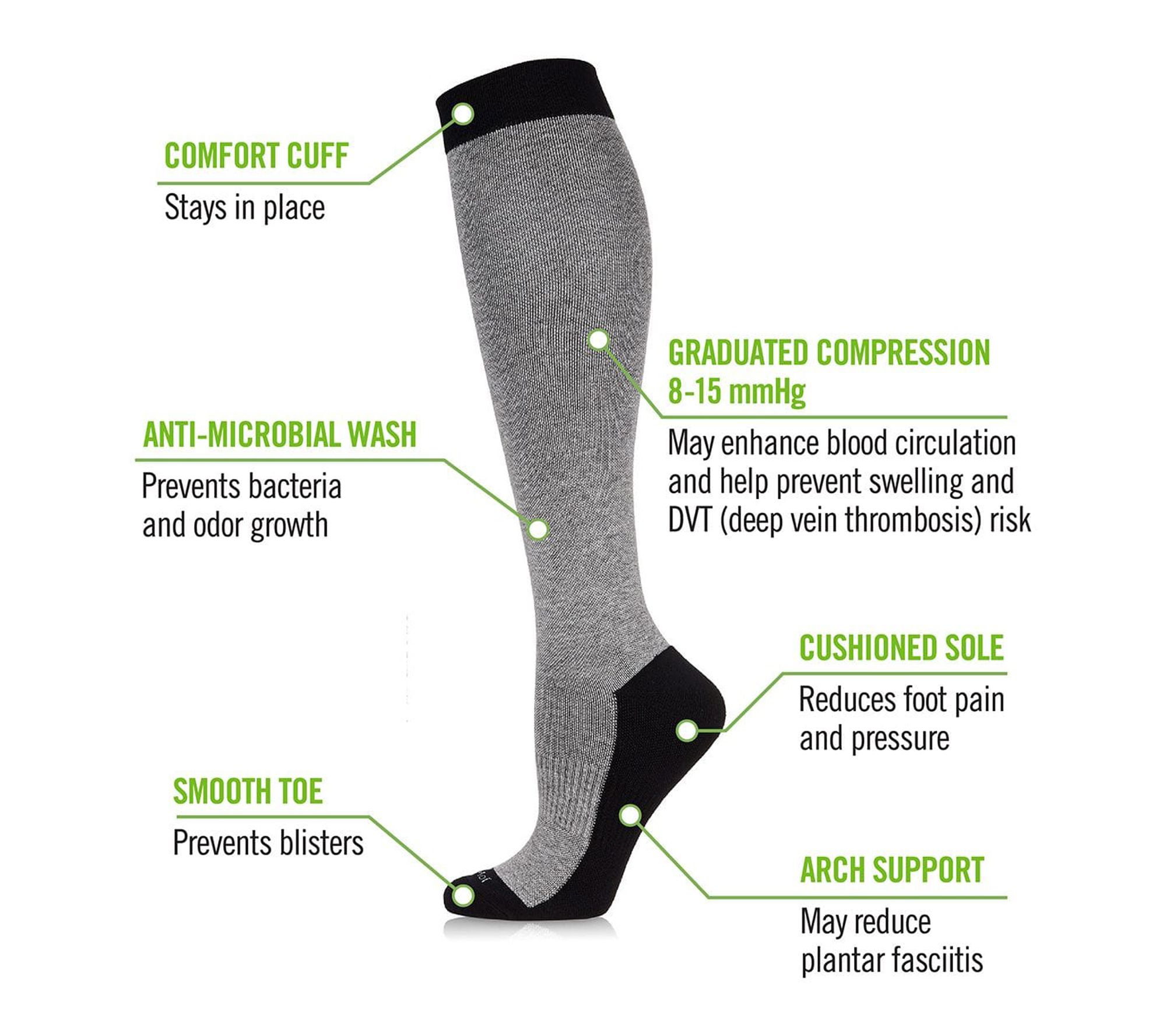 Whether you're racing through a busy day at work or catching a long flight, these compression socks deliver soothing support and all-day comfort. From MeMoi.