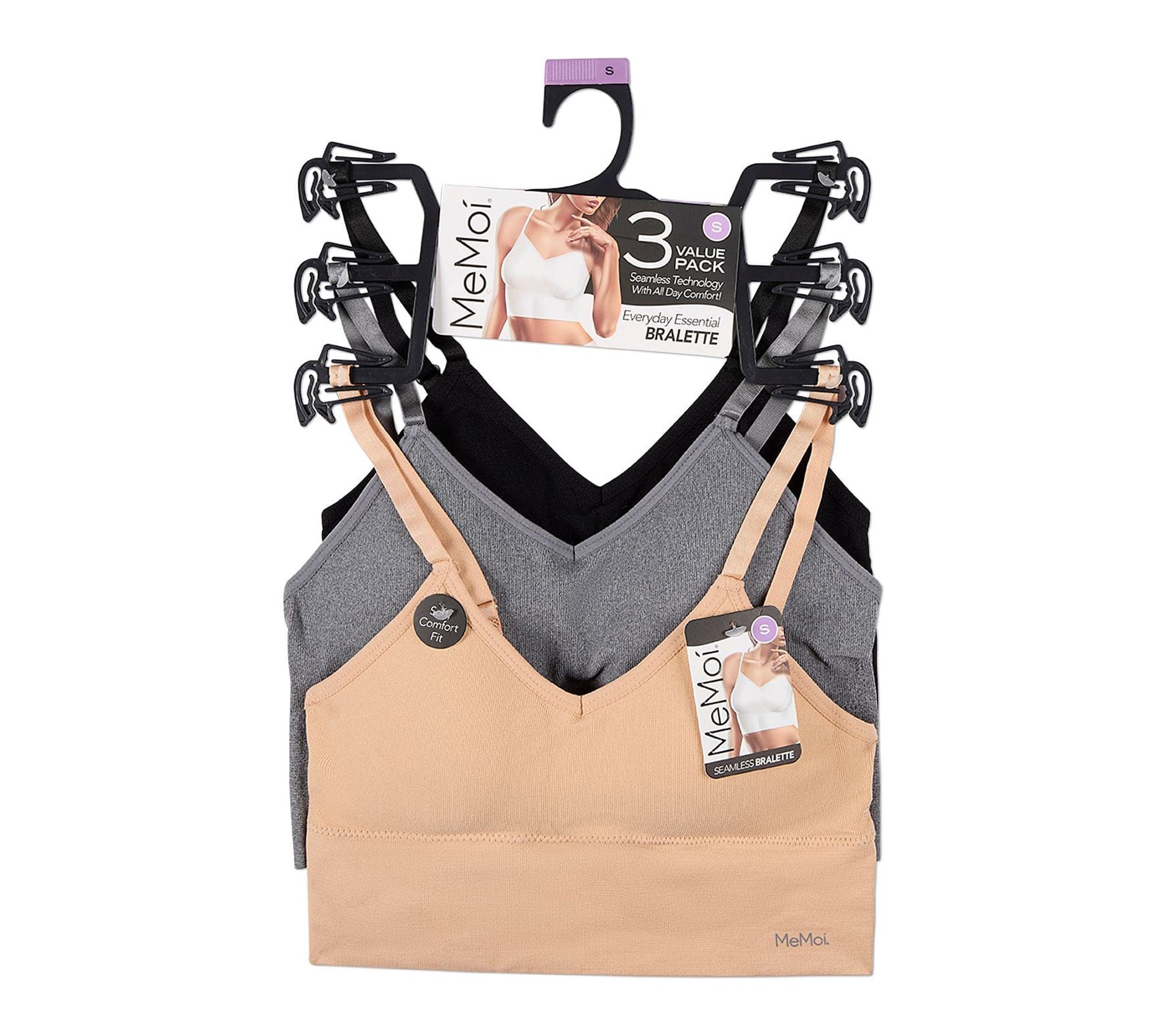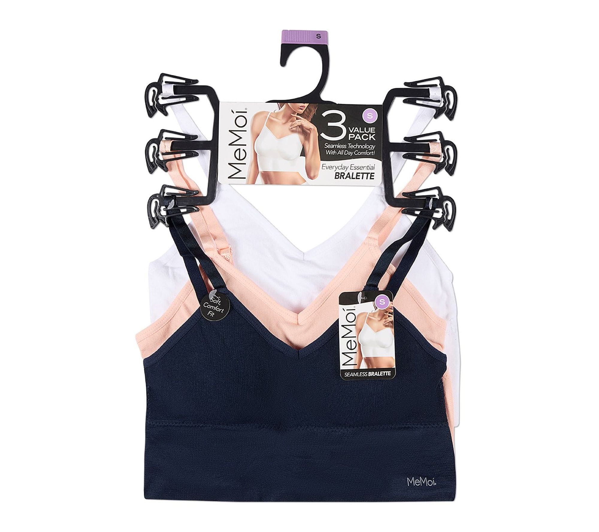Slip into effortless comfort with this set of three seamless bralettes, designed to give you a sleek silhouette no matter the season. Enjoy tag-free days and no show-through under your favorite tops, with smoothing support and soft, stretchy fabric that moves with you from morning errands to evening relaxation. From MeMoi.
