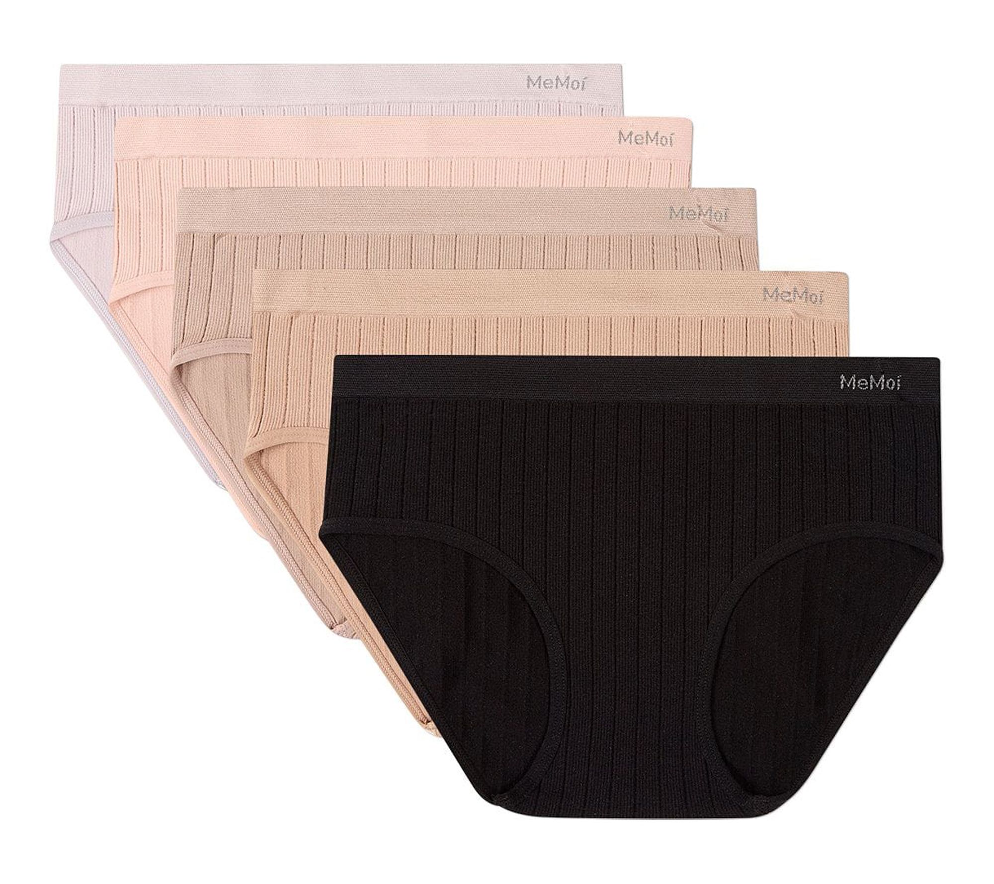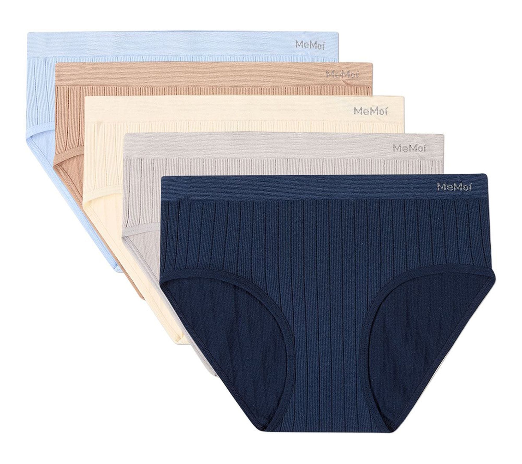 Memoi Women's Set of 5 Seamless Wide-Rib Full-Coverage Briefs