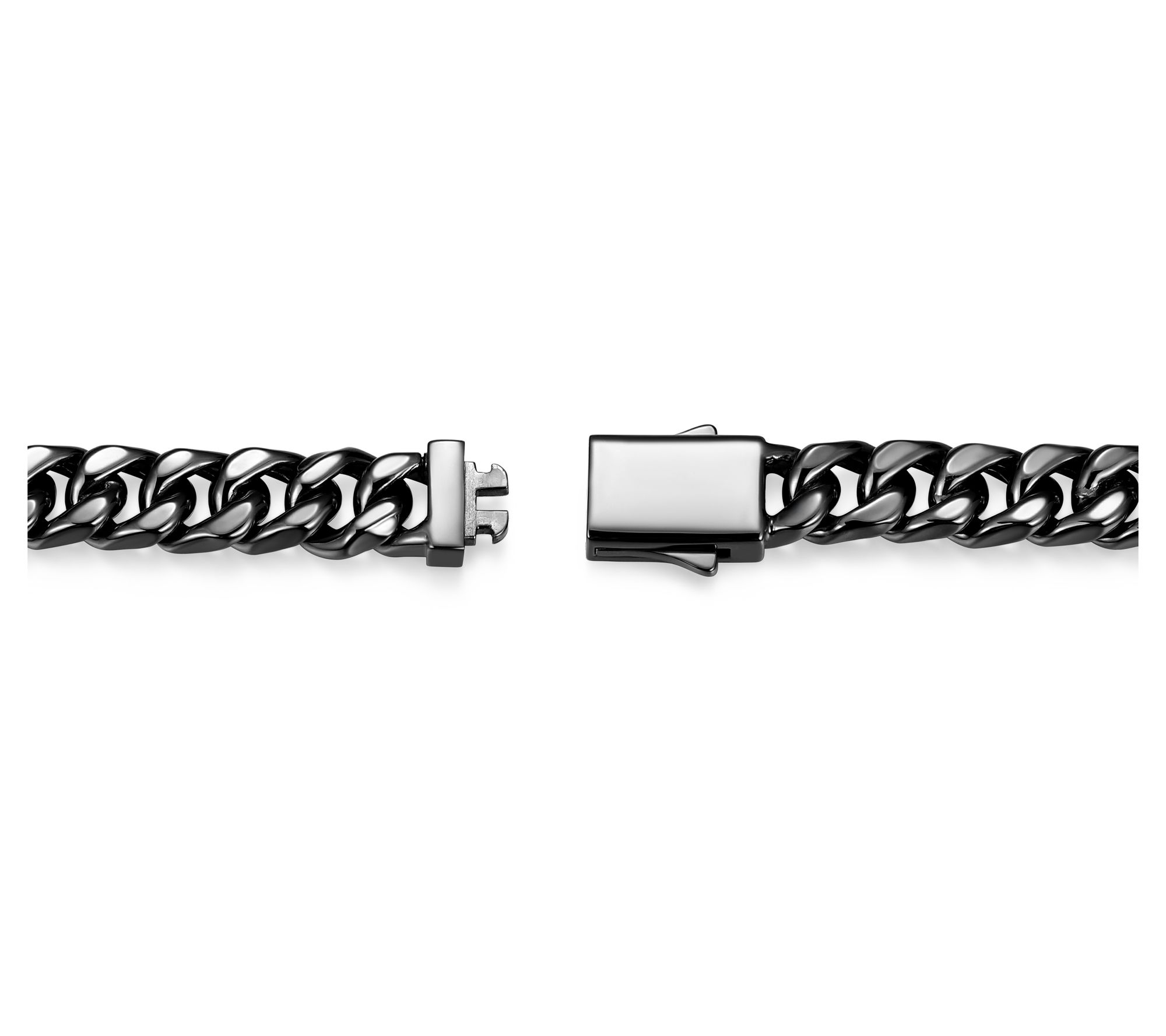 Men's Gunmetal Sterling Black Sapphire Curb Link Bracelet
