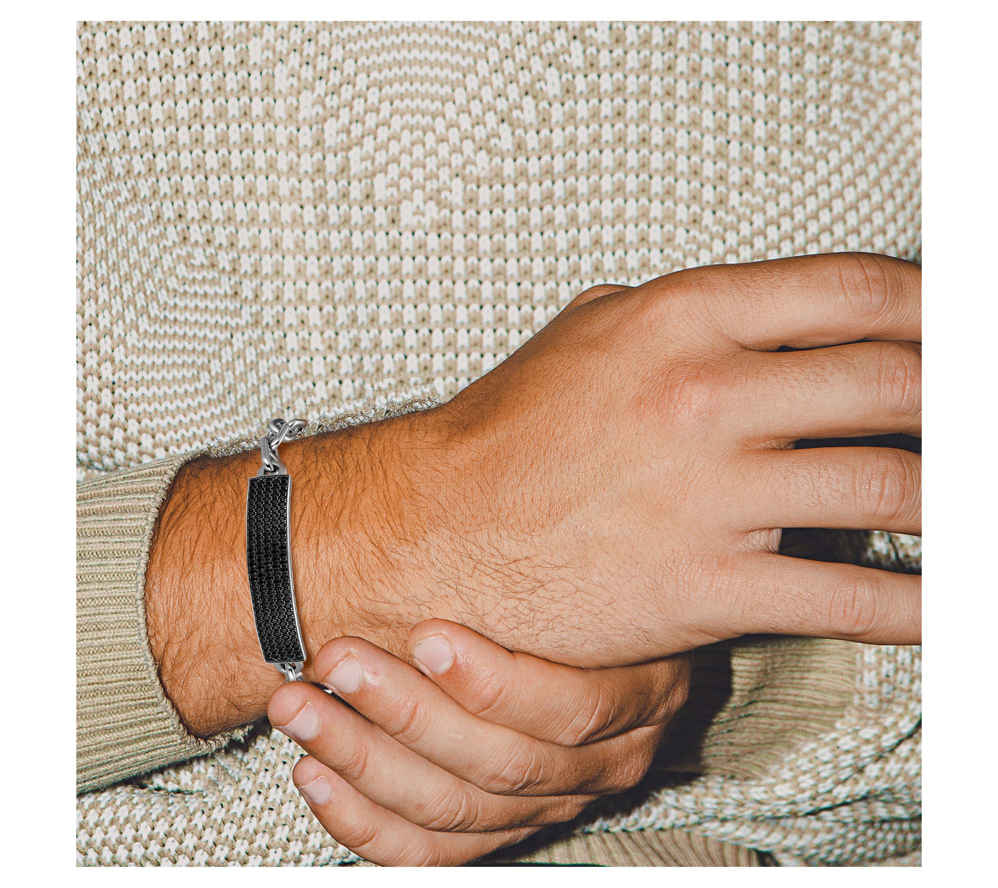 Men's Pave Black Spinel Bracelet, Sterling Silver