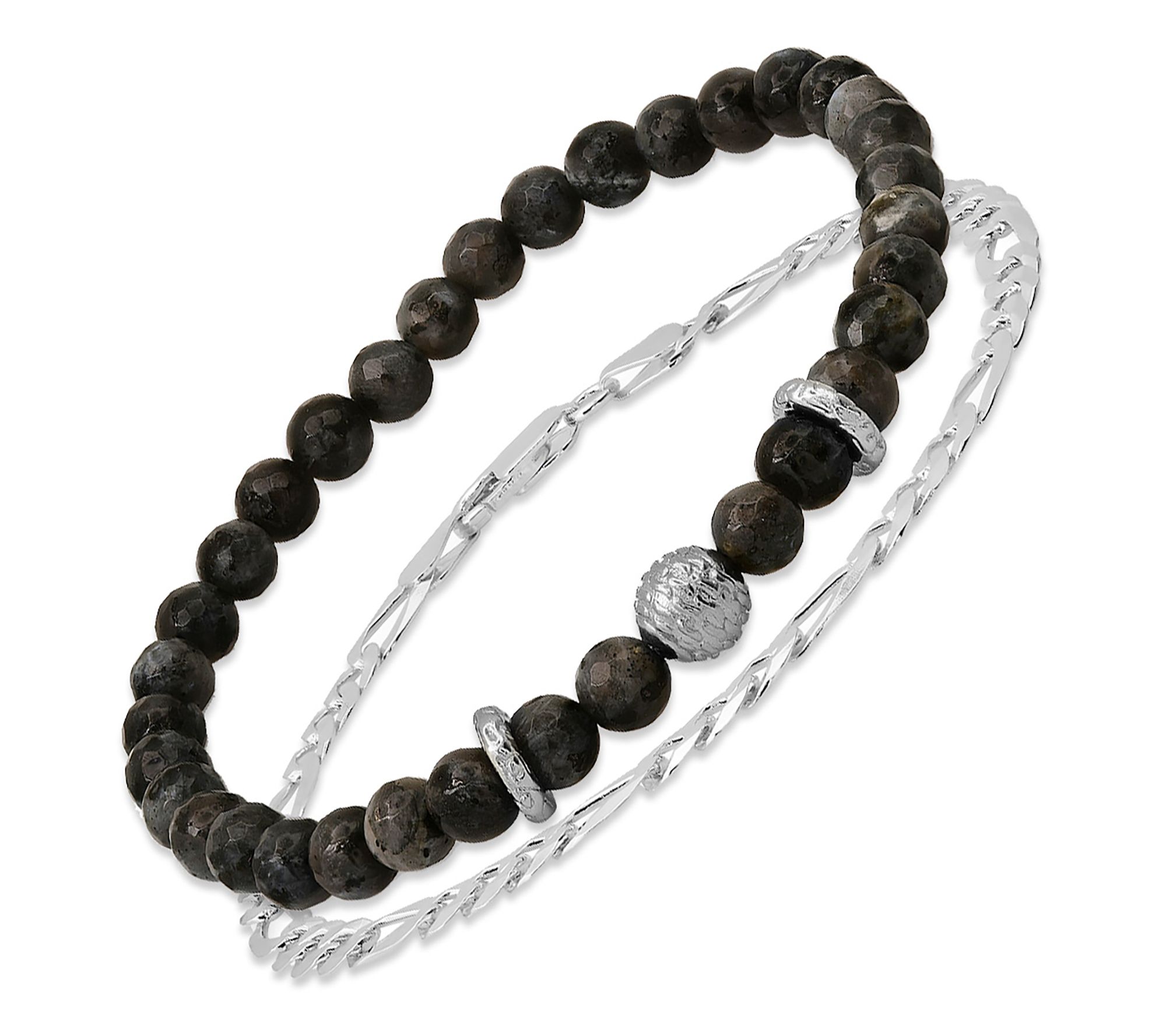 Upgrade your accessory game with this men's gray agate beaded bracelet and figaro chain bracelet set. Perfect for adding sophistication to any outfit, this versatile duo is easy to wear, featuring a lobster claw clasp on the chain bracelet and a slip-on style for the beaded bracelet.