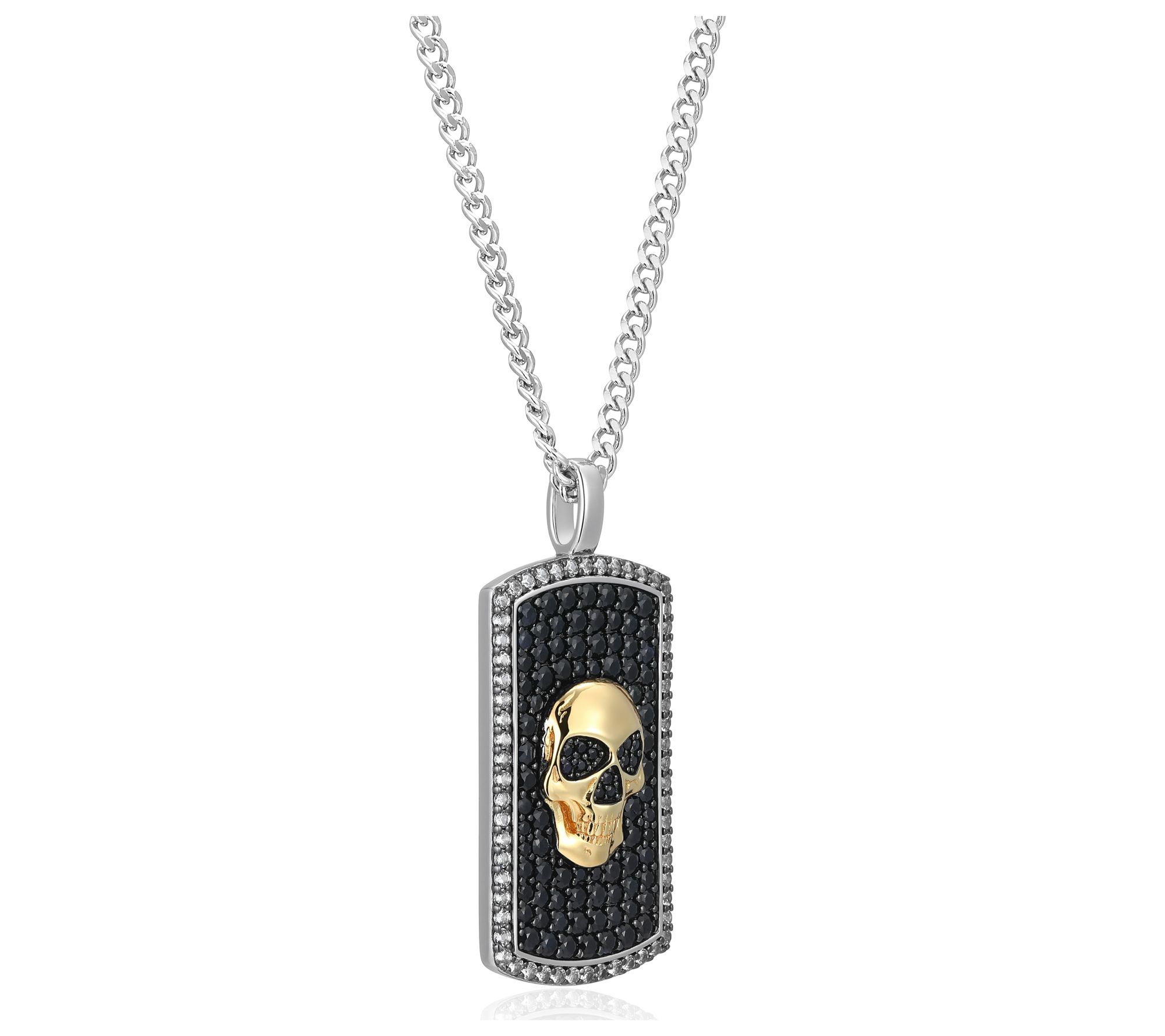 Saturday nights or street-inspired days get a bold upgrade with this pendant. Shimmering black sapphires and created white sapphires make a standout backdrop for the striking 18K yellow gold-plated sterling silver skull -- adding undeniable attitude to any look.