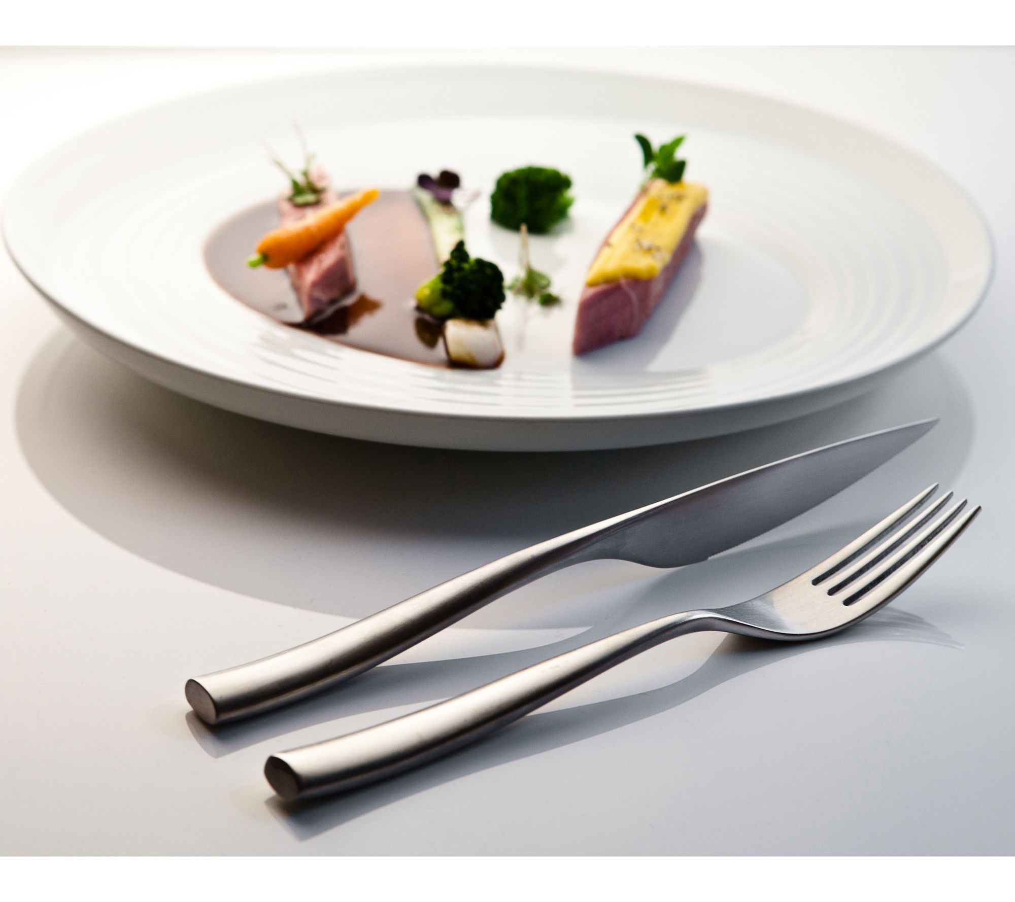 Whether you're hosting a dinner party or enjoying a quiet meal at home, this flatware set shines with sleek lines and striking modern design. Crafted in Italy from 18/10 stainless steel, each piece feels substantial in hand and brings a sense of refined elegance to any table setting. From Mepra.