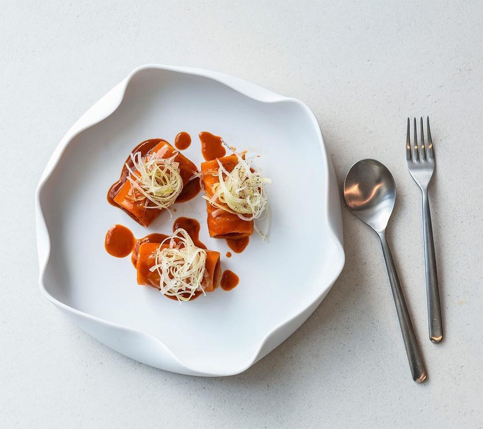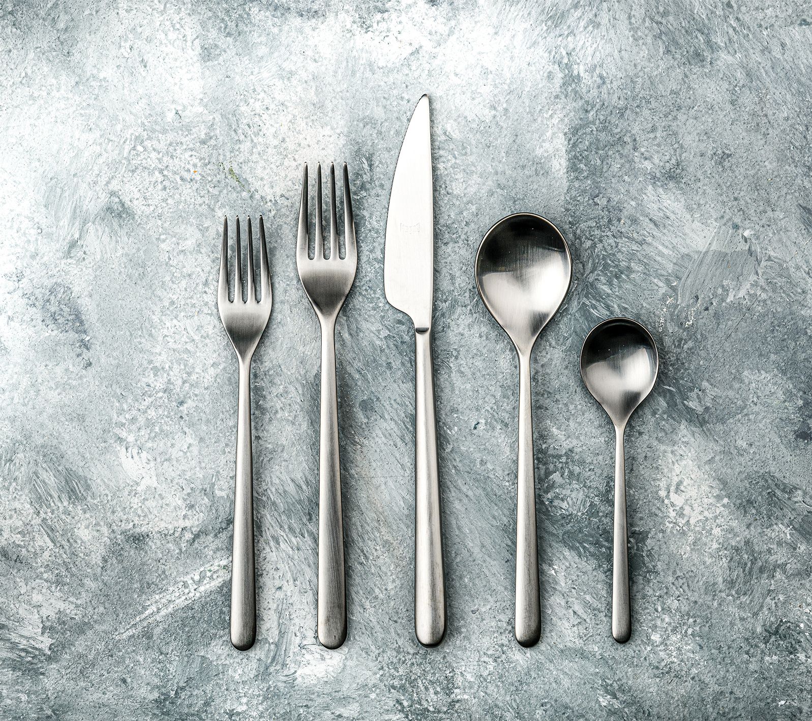 Elevate your dining experience with the Mepra Linea Ice five-piece flatware set. Inspired by iconic designers, this collection features a cool, minimalistic aesthetic paired with beautiful craftsmanship. From Mepra.