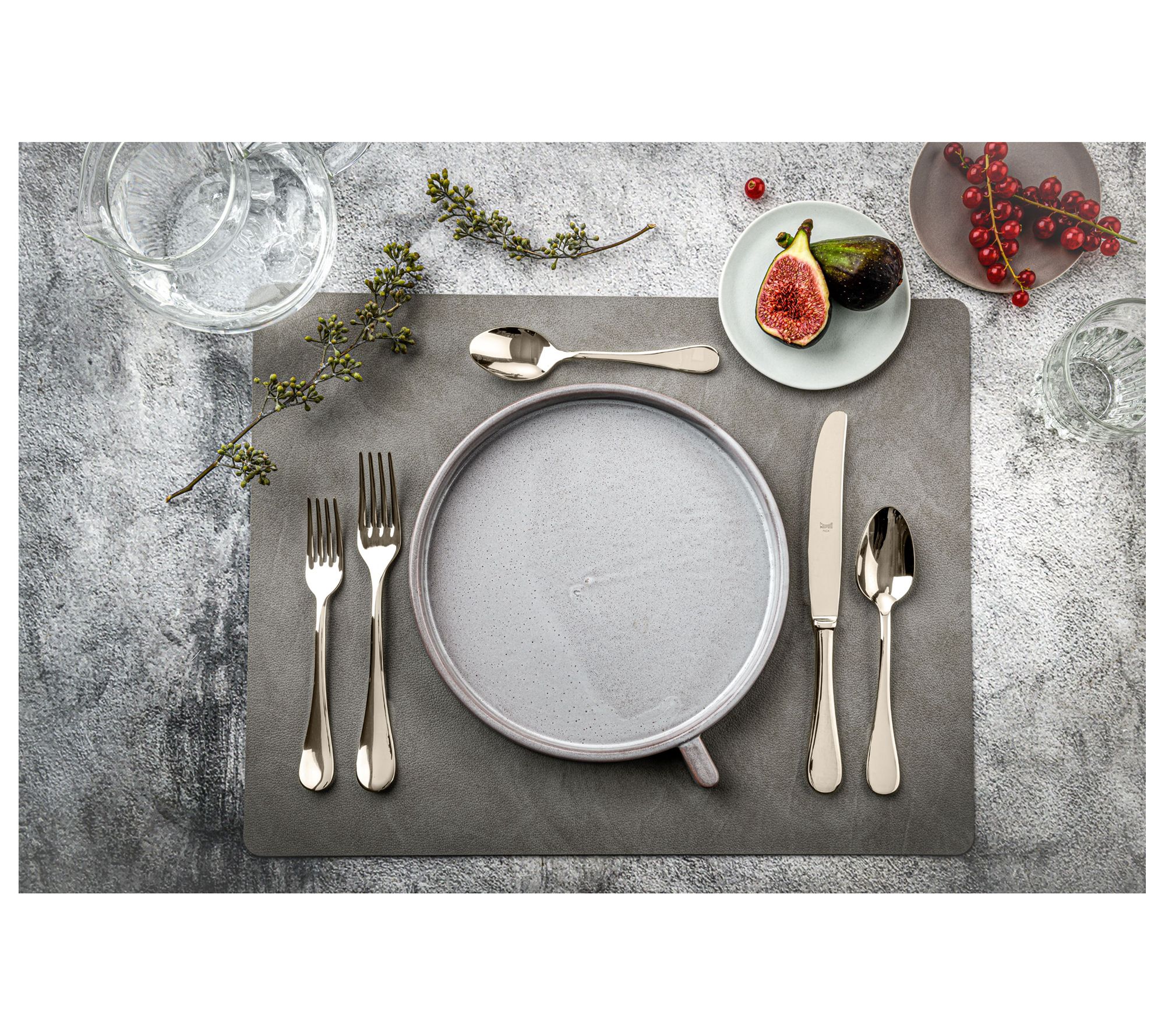 Whether you're hosting a special dinner or savoring a quiet meal, this five-piece flatware set adds a touch of Italian elegance to your table. Each utensil features a champagne-toned finish and is crafted with comfortable, weighty handles, blending timeless style with everyday function. From Mepra.
