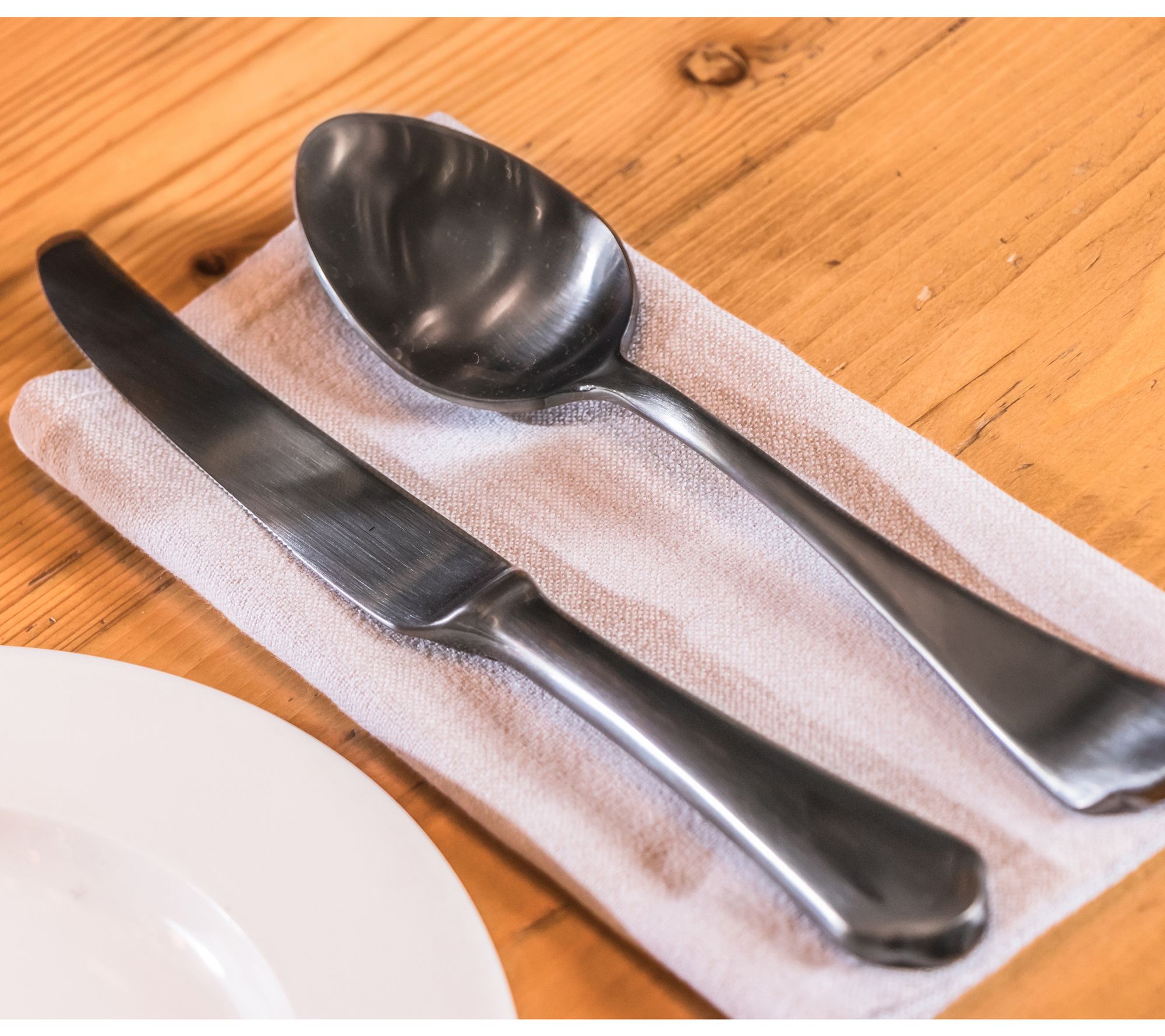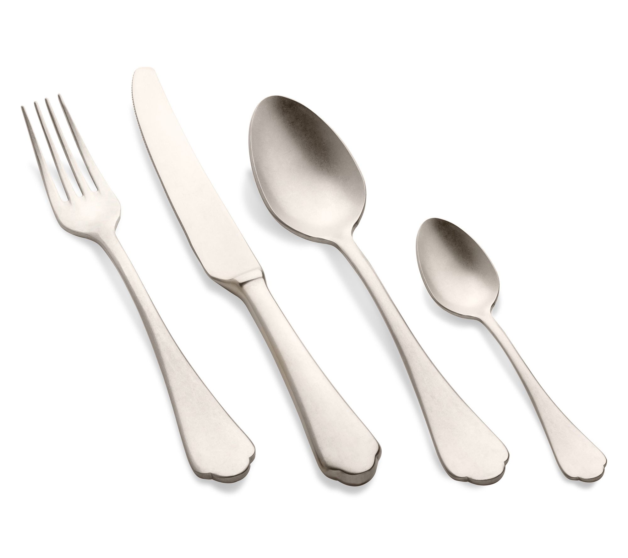 • Includes teaspoon, soup spoon, knife, dinner fork, and salad fork