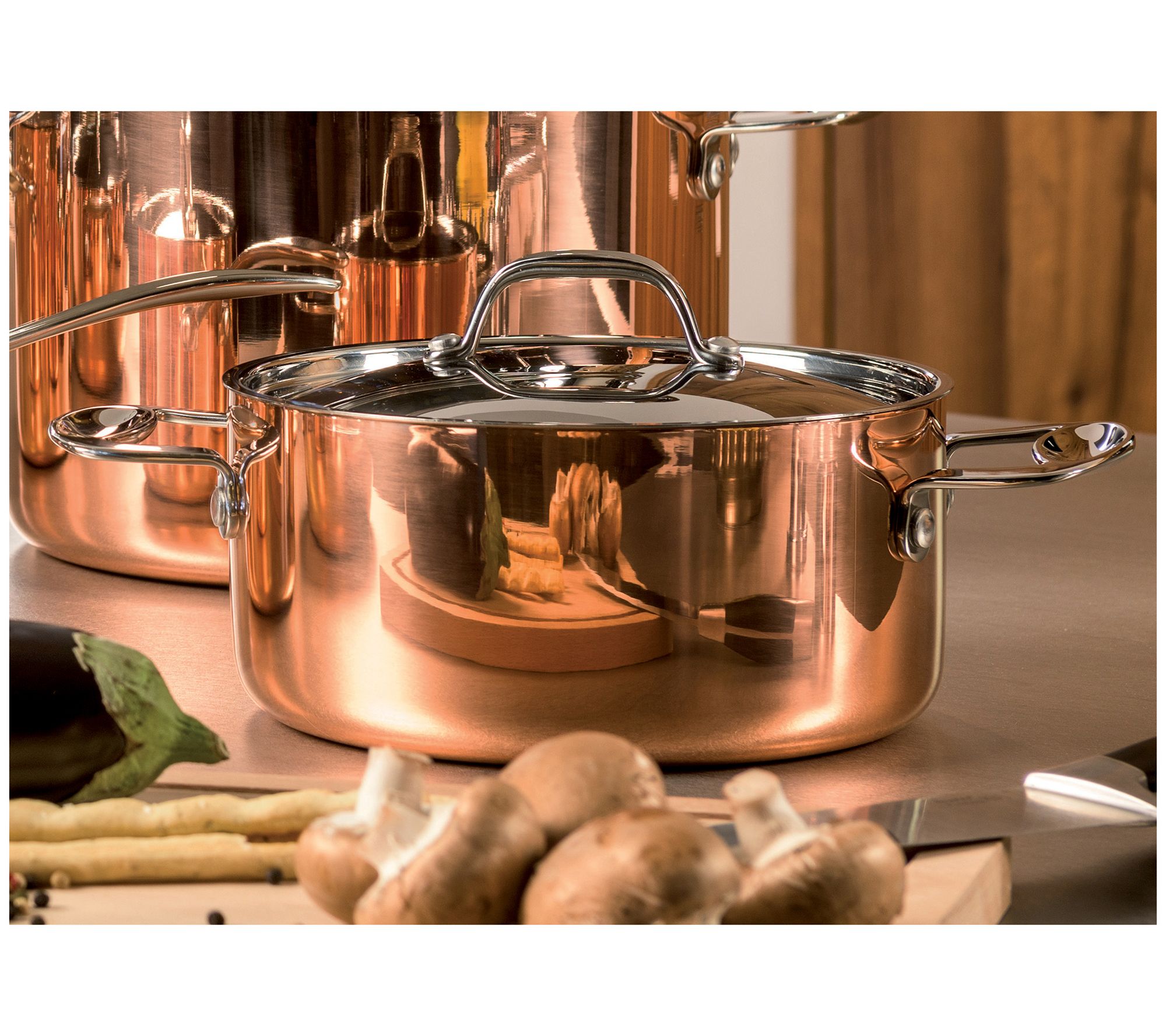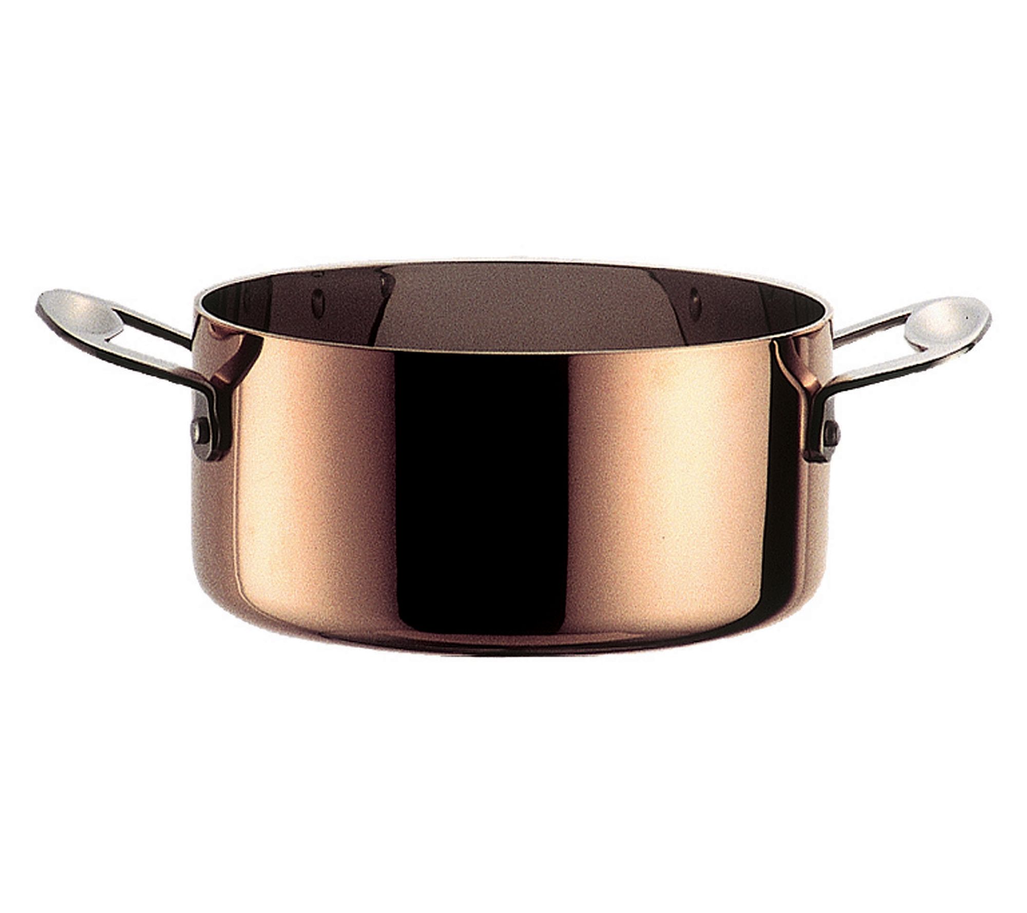 Experience the artistry of Italian cooking with this 8" Copper Toscana casserole, expertly crafted to provide precise temperature control and even heat distribution. Its tri-ply construction merges sleek stainless steel, a high-conductivity copper exterior, and an aluminum core -- ideal for elevating favorite stews or slow-roasted sides at family gatherings. From Mepra.
