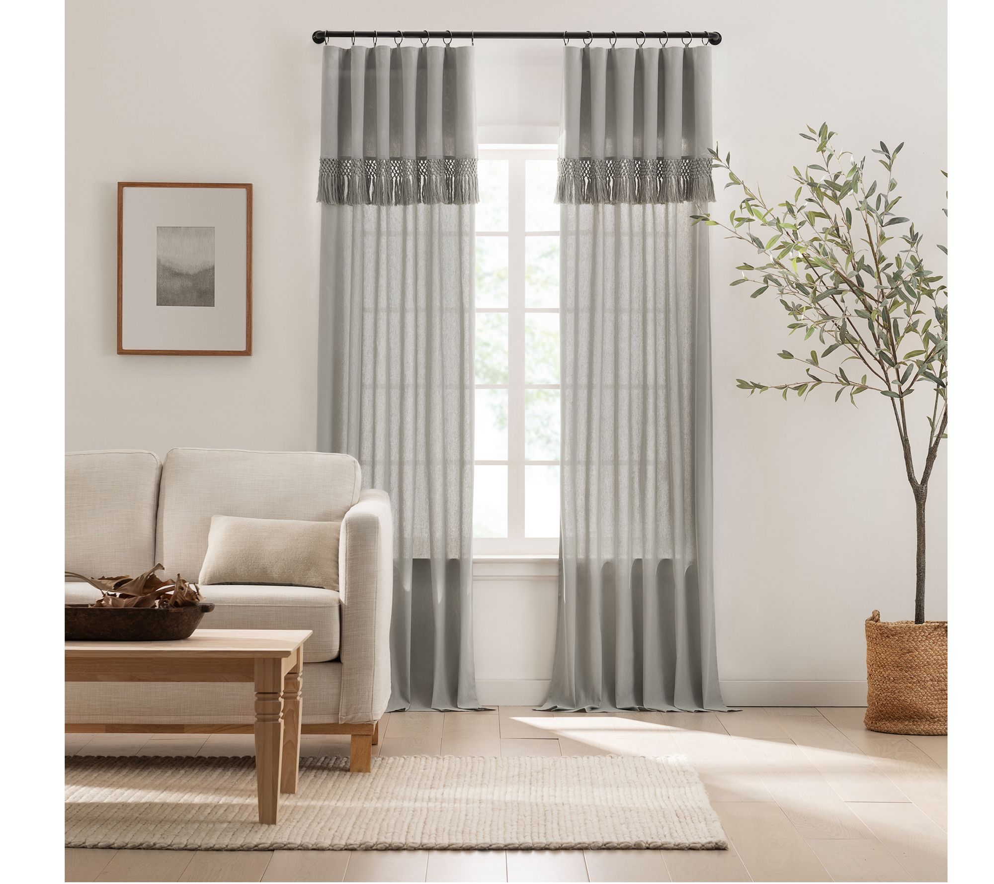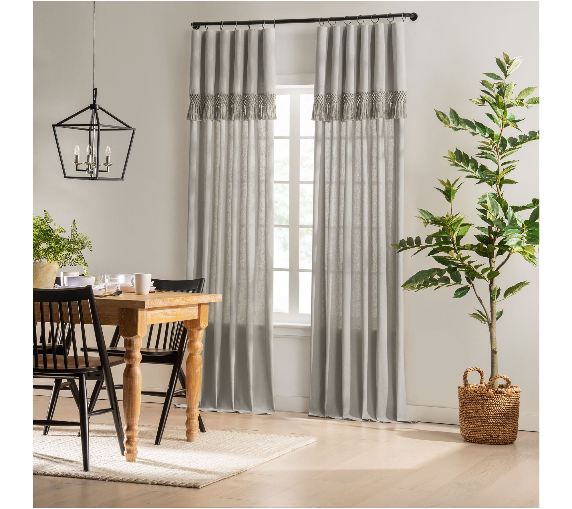 Add beautiful style and texture to your window with the Lucinda light-filtering ringed panel, offering woven accents and fun tassel detailing. From Mercantile.