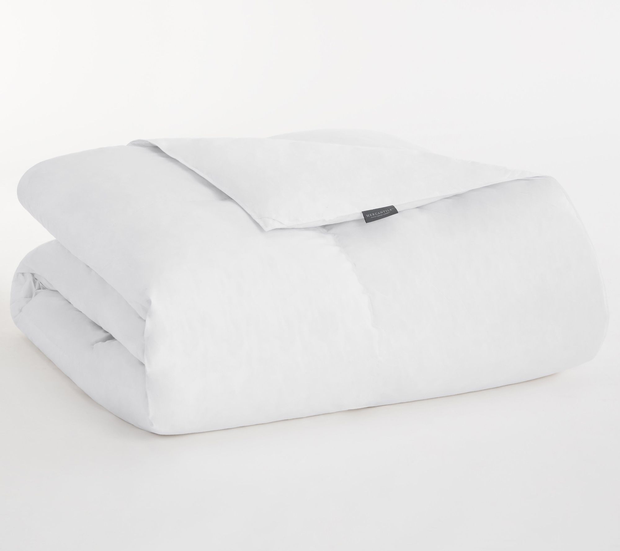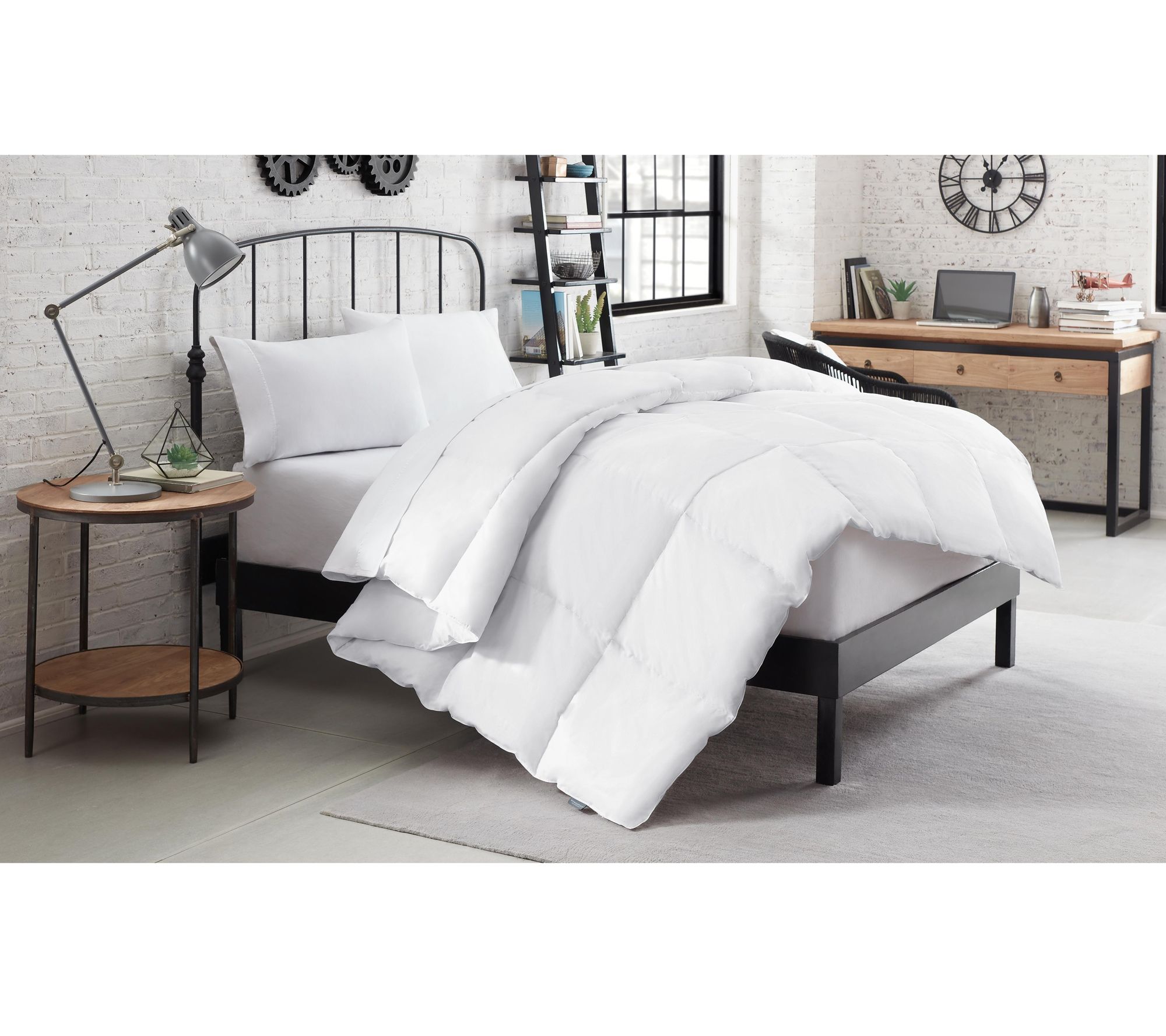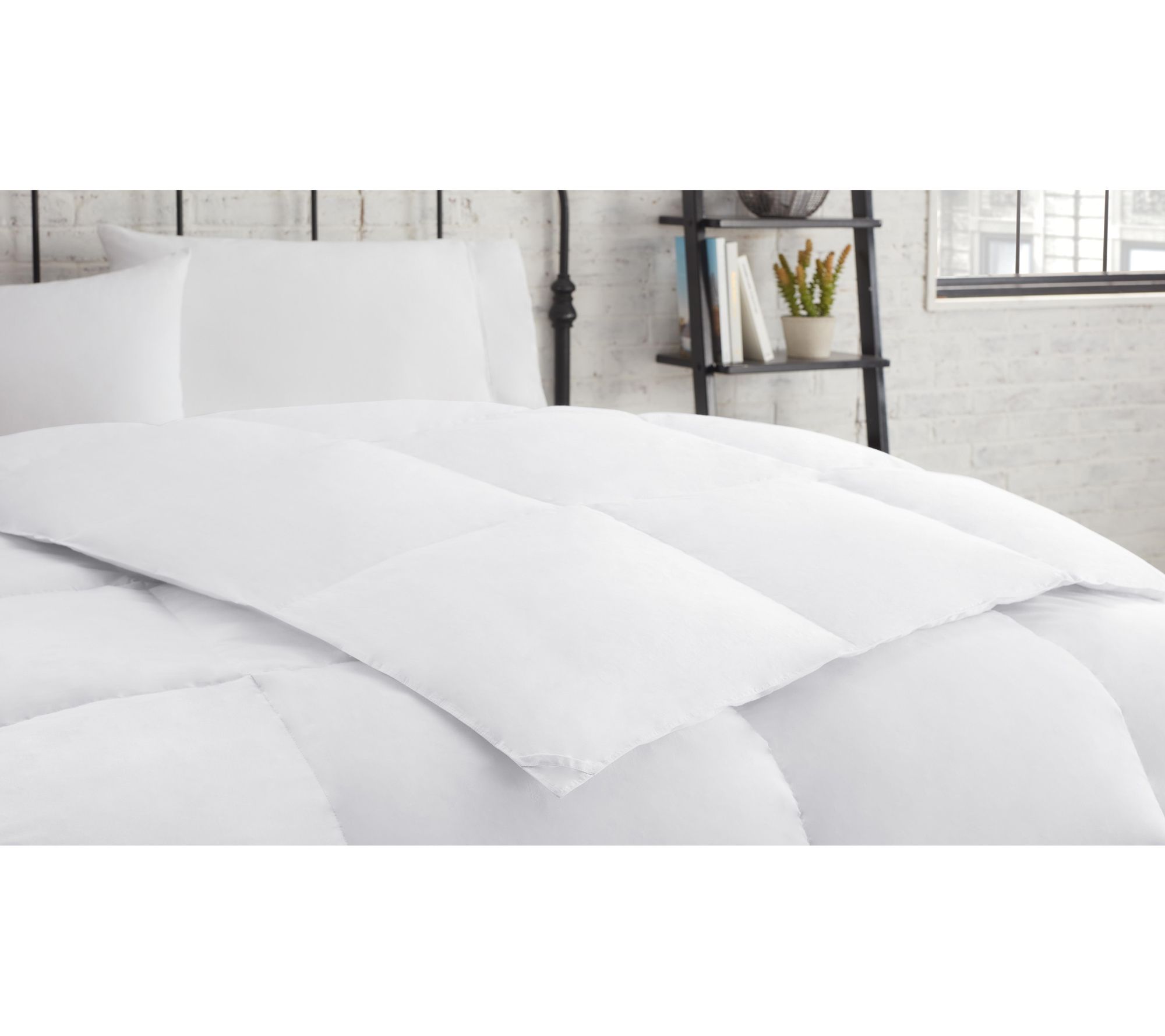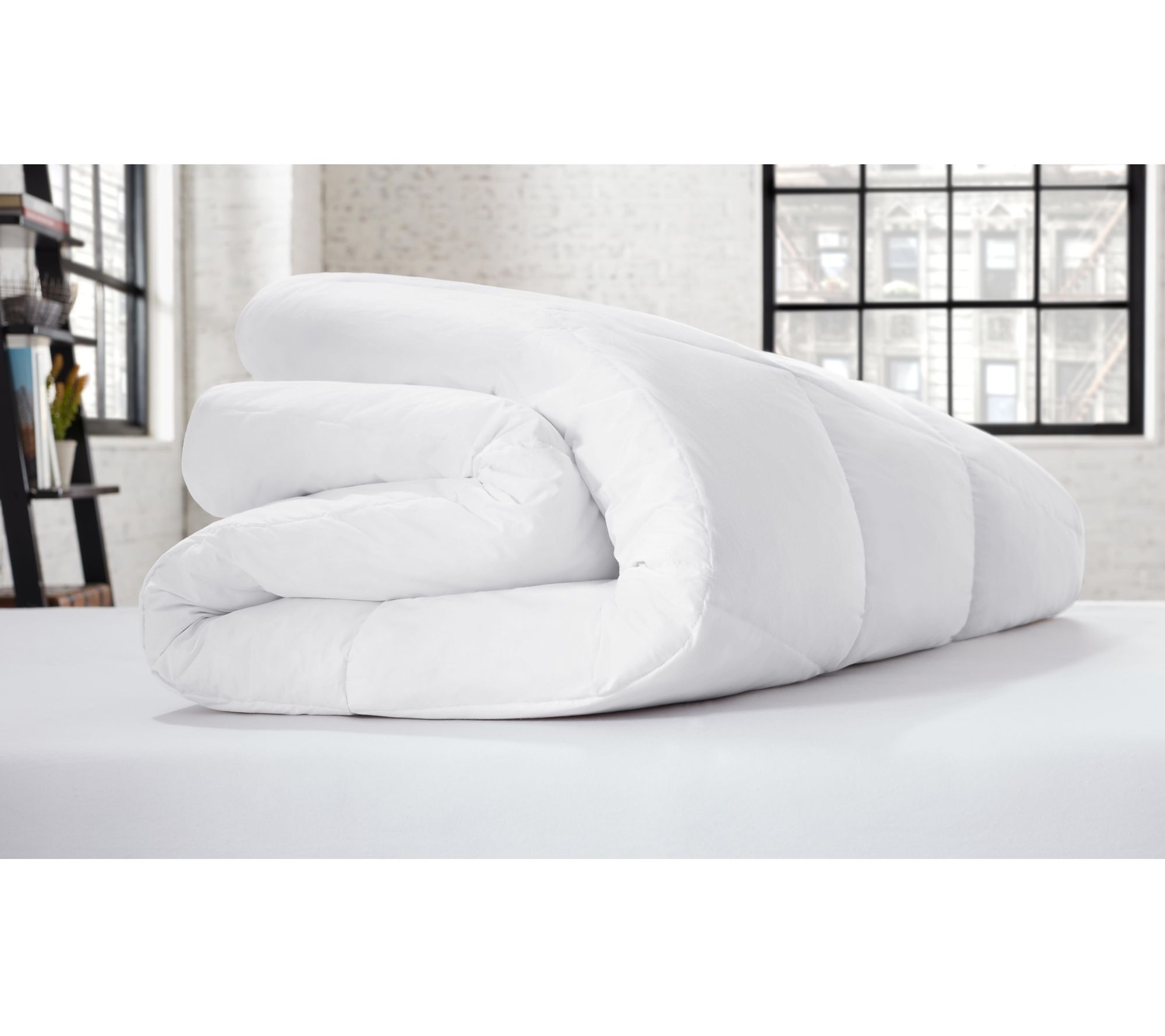 Drift off to sleep in luxurious comfort with this supersoft comforter boasting a thick feather filling surrounded by a breathable cotton shell. From Mercantile.