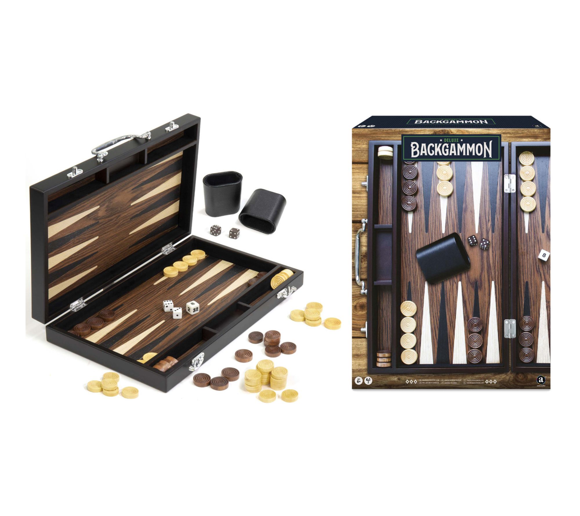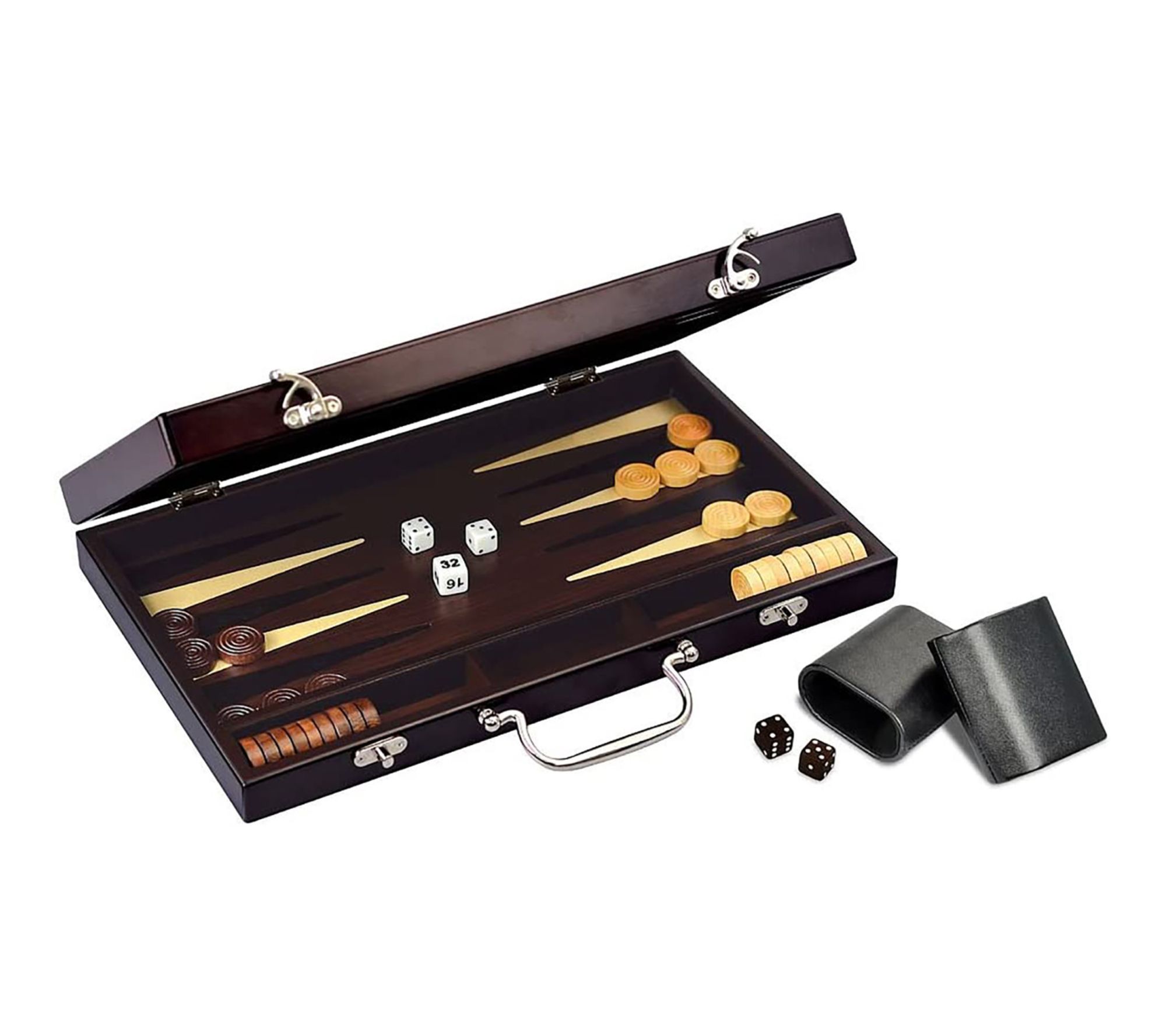 • Includes case, 30 wood playing pieces, 4 dice, 1 doubling cube, 2 leatherette shakers, and instructions