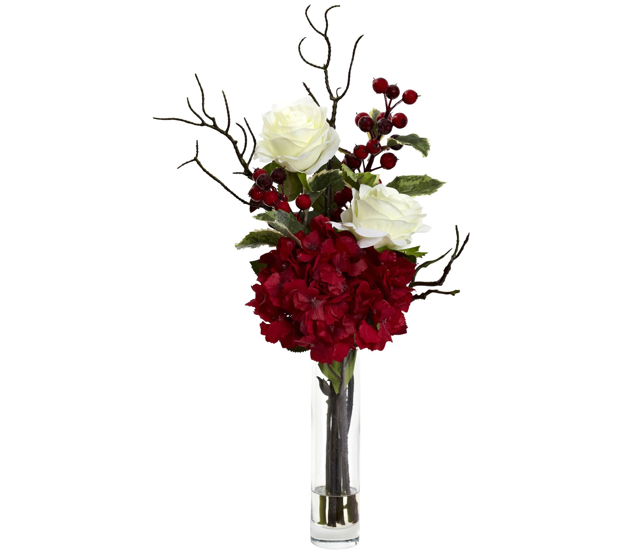 Merry Christmas Rose Hydrangea Arrangement by Nearly Natural