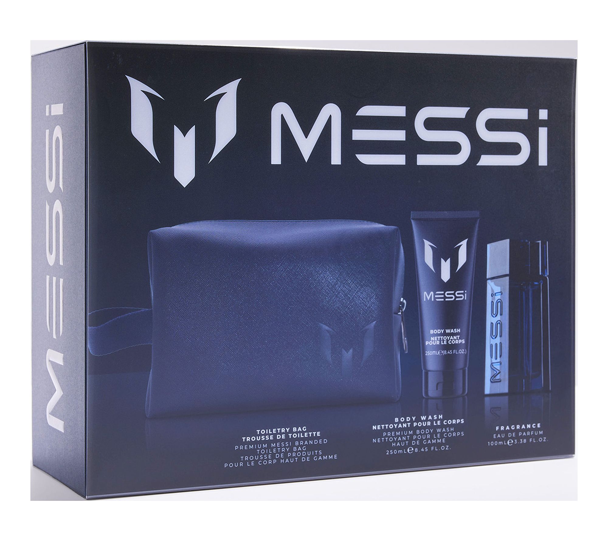 Discover the greatness within Leo Messi Eau de Parfum. Inspired by the man who is more than just a soccer icon, this scent captures the essence of Messi's humble yet powerful persona. It is a journey that reflects the multifaced dimensions of a legend, designed to evoke the hidden strengths and quiet confidence that resides within us all. A scent that tells a story far beyond what meets the eye. The Leo Messi Fragrance is designed to provoke a profound emotional connection, capturing the essence of Messi as a world champion, a father, and a gentleman. This unique eau de parfum strikes a harmonious balance between invigorating freshness enveloping warmth, embodying the dynamic spirit and energy synonymous with soccer. The fragrance unveils with an invigorating blend of fresh cardamom from Central America, crisp apple leaf, and a spice filled burst of wild cypress from Europe. These exquisite notes symbolize dynamic presence and vitality, imparting a brisk freshness that captivates the senses from the very first moment. The set includes eau de parfum, body wash, and a convenient travel bag. From Messi.