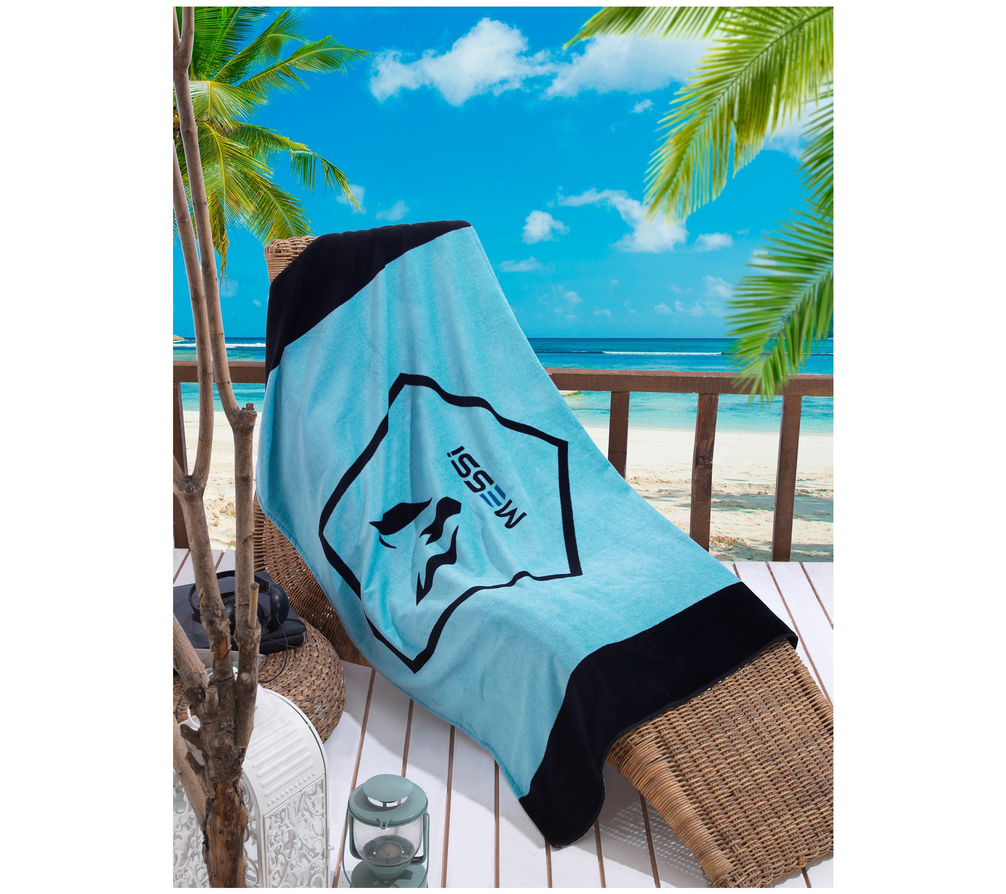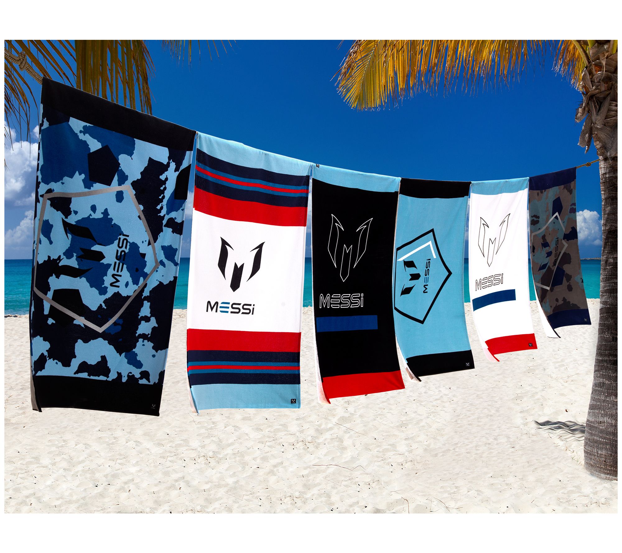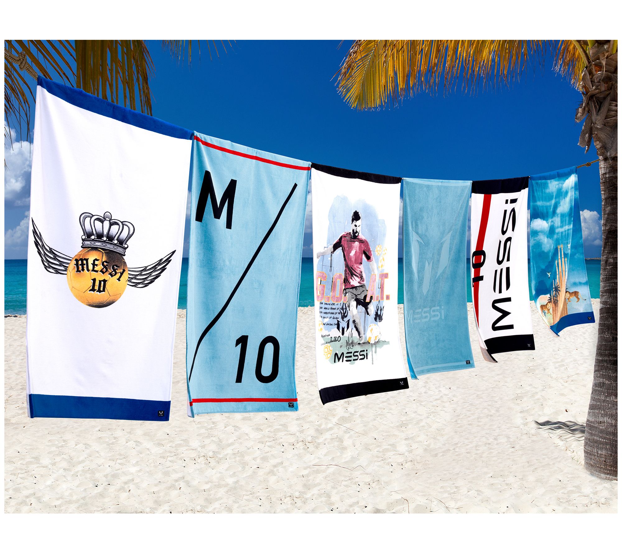 Kick it like a pro when you lie back on this towel featuring your favorite footballer.