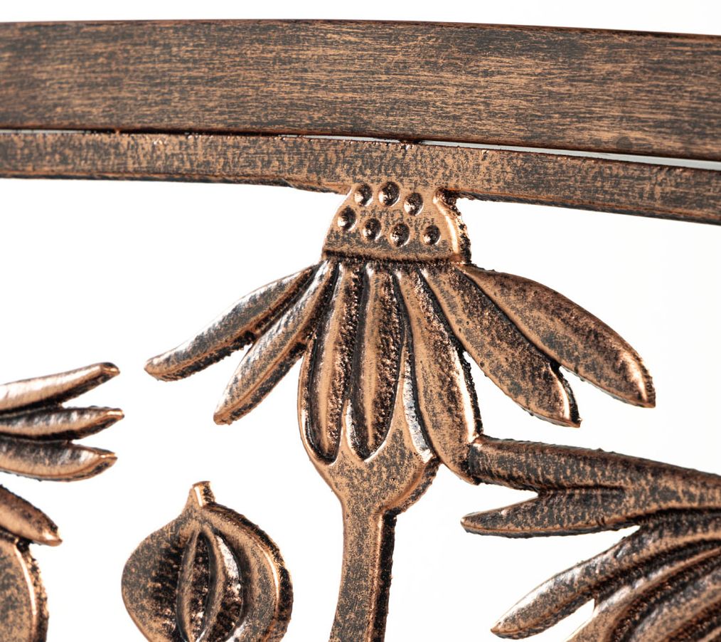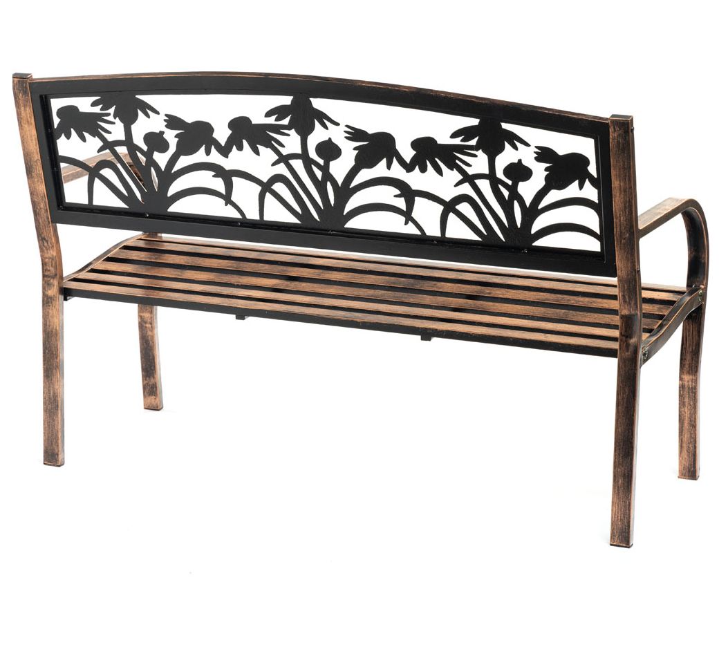 Enjoy quiet moments in your garden with the artistic beauty and practical functionality of this charming metal coneflower bench. From Evergreen.