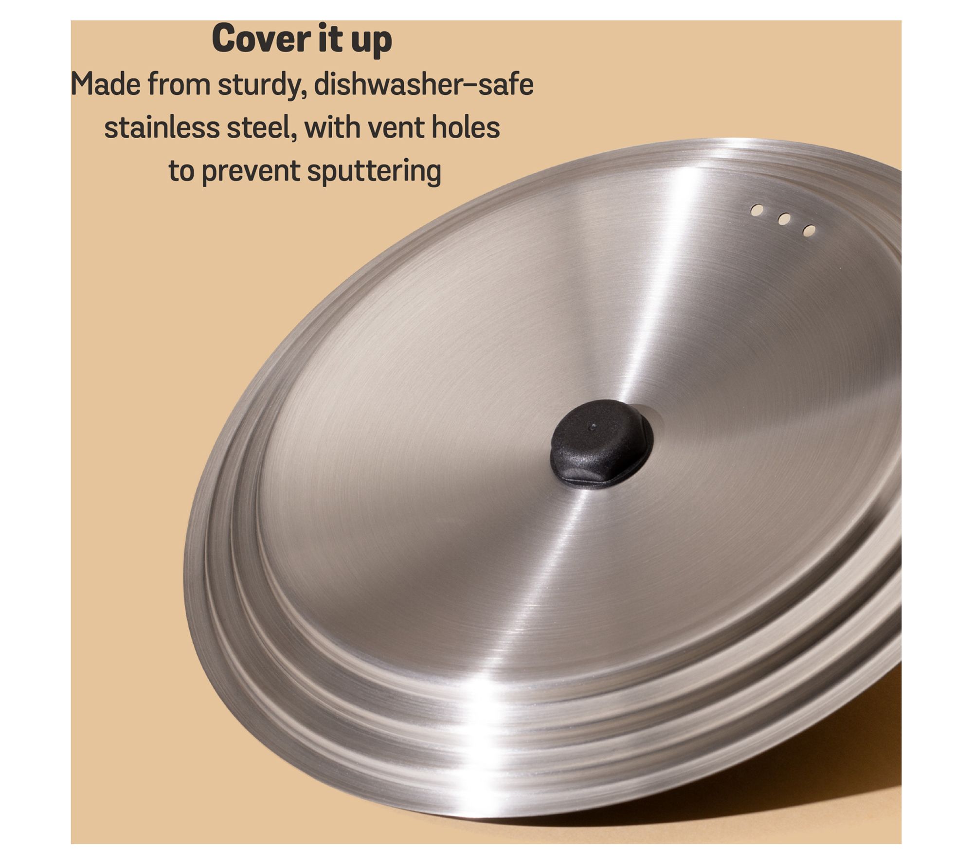 Put a lid on it! Designed for use with your medium-sized Accent Series pots and pans, this universal stainless steel lid helps to lock in heat, flavor, and moisture so all your meals turn out beautifully. From Meyer.