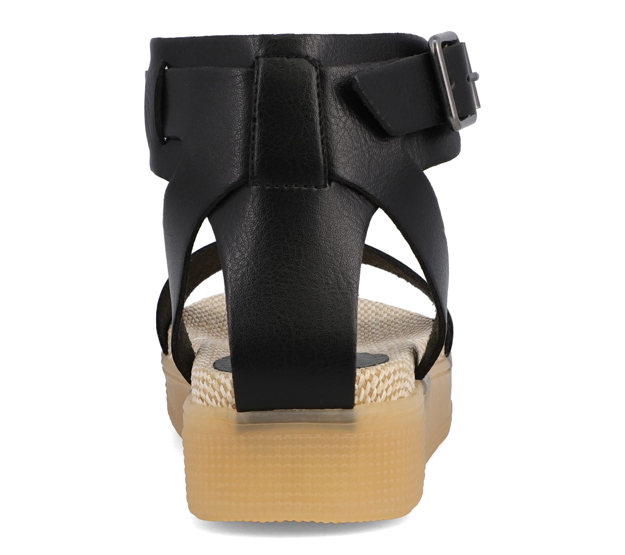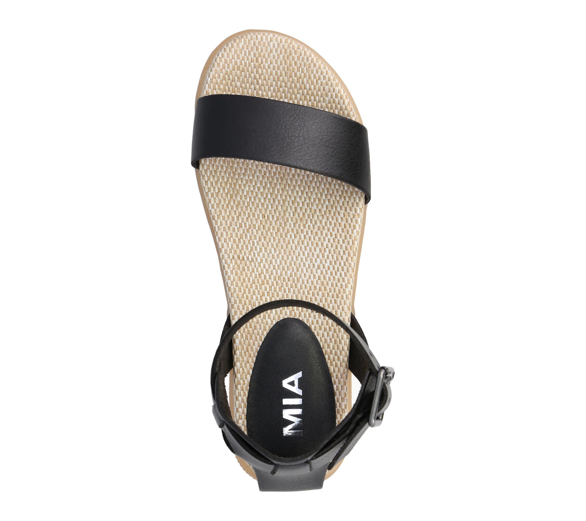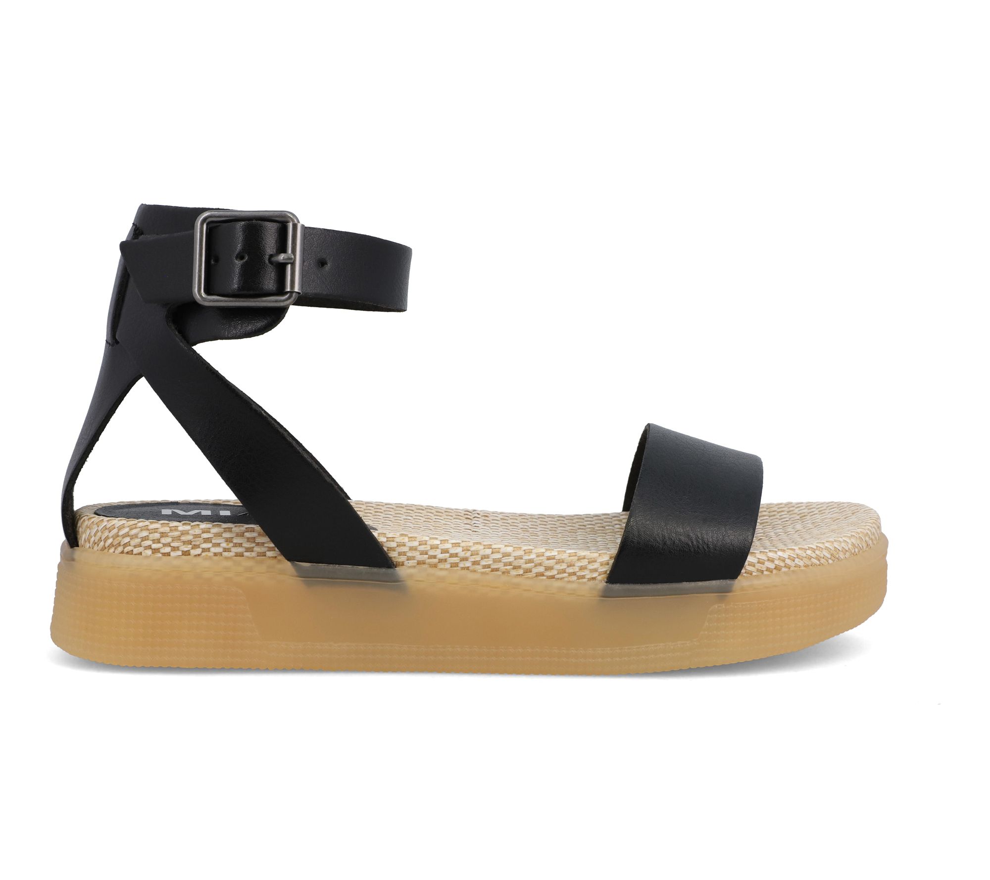 • Ankle strap with buckle closure; open toe