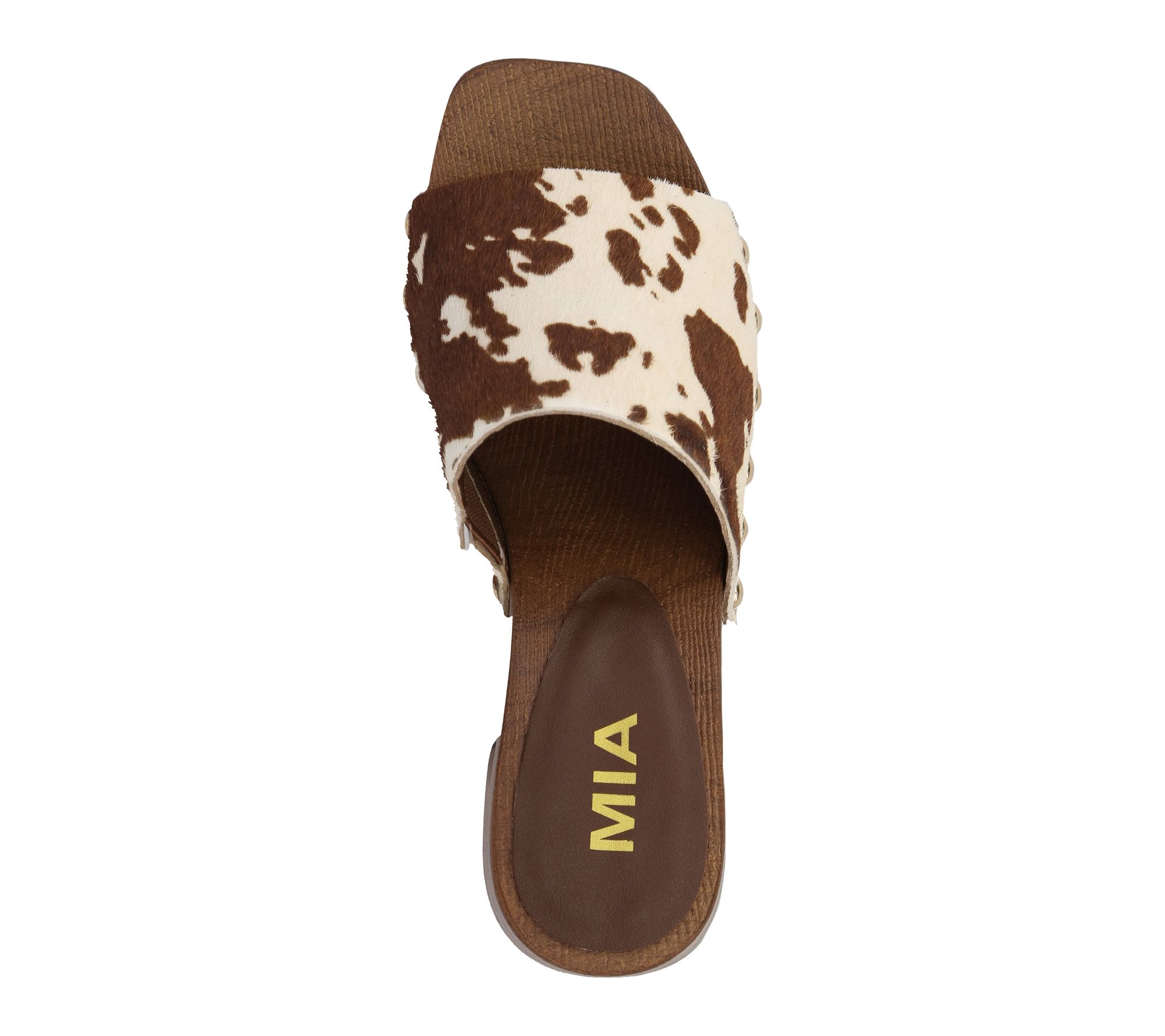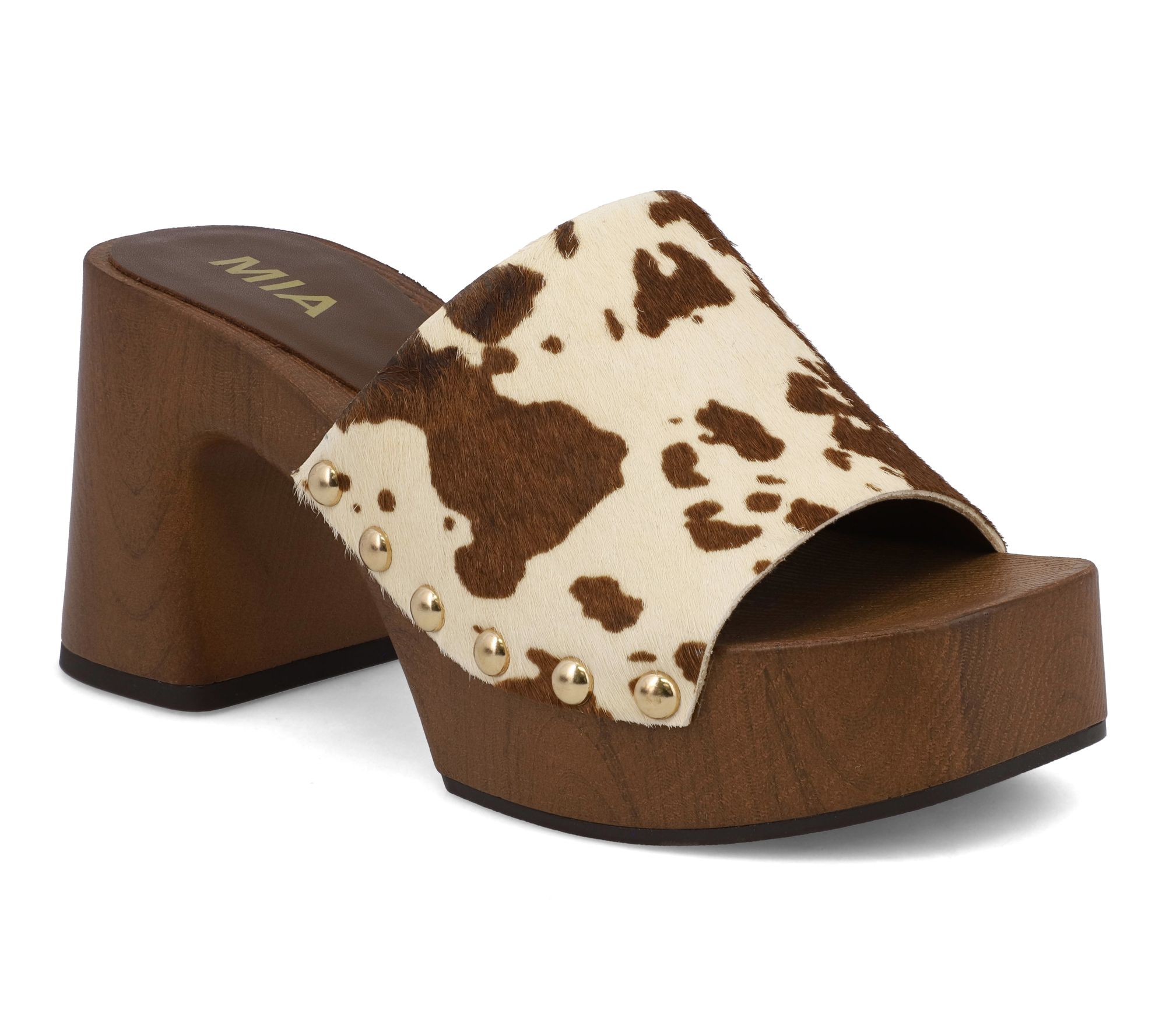A burst of retro charm meets everyday comfort with these platform mule sandals. Crafted with chic stud detailing and a sturdy block heel, they add bold style and effortless lift to your spring and summer looks -- perfect for brunches, weekend outings, or a fun night out. From MIA.