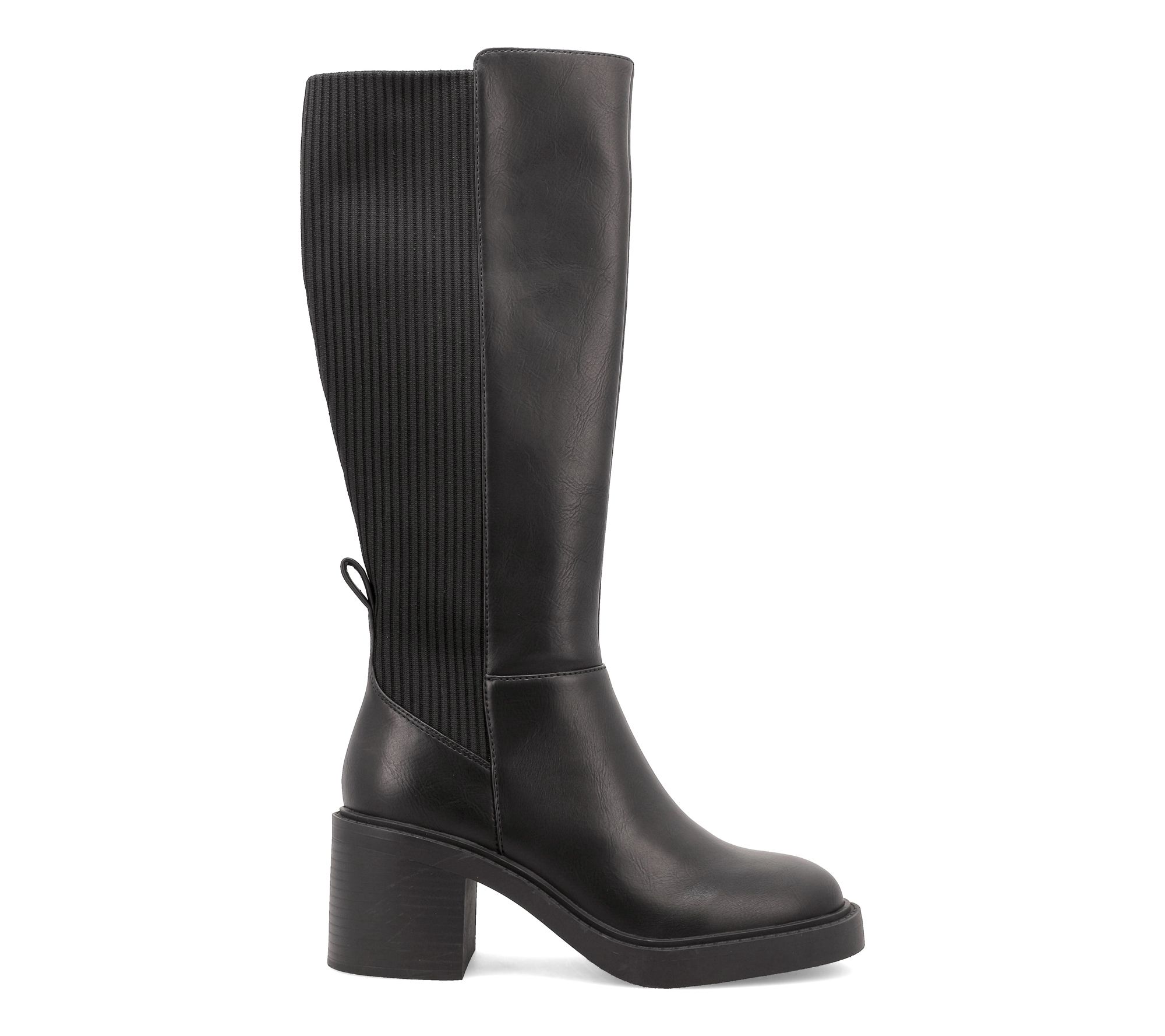 Take your knee-high boot game to the next level with the MIA Shoes block heel knee high boots. Crafted with faux leather and a stretch knit upper, these boots feature a convenient side-zip closure for easy on and off wear. The 2.7" stacked heel provides just the right amount of height for any look. From MIA Shoes.