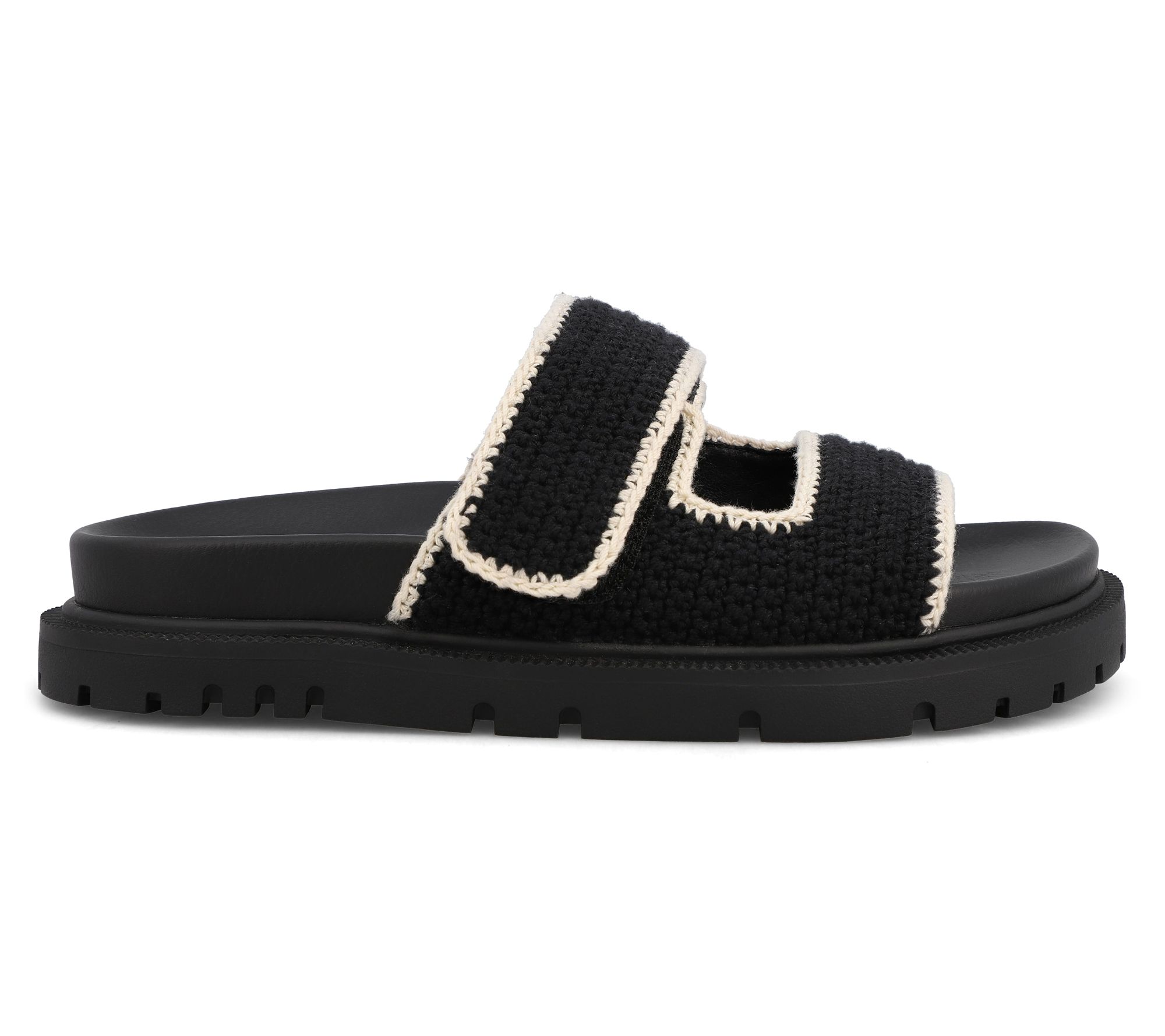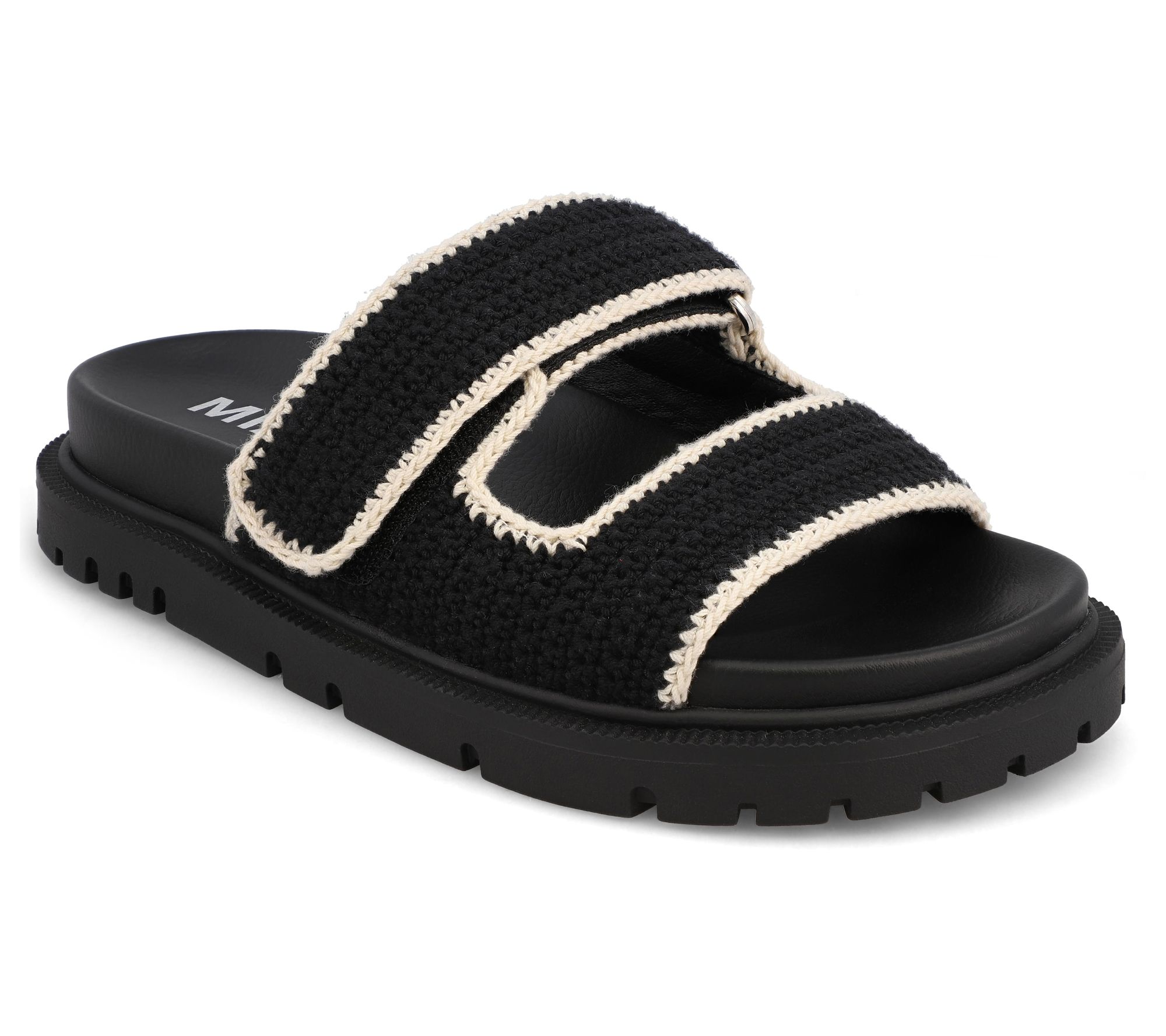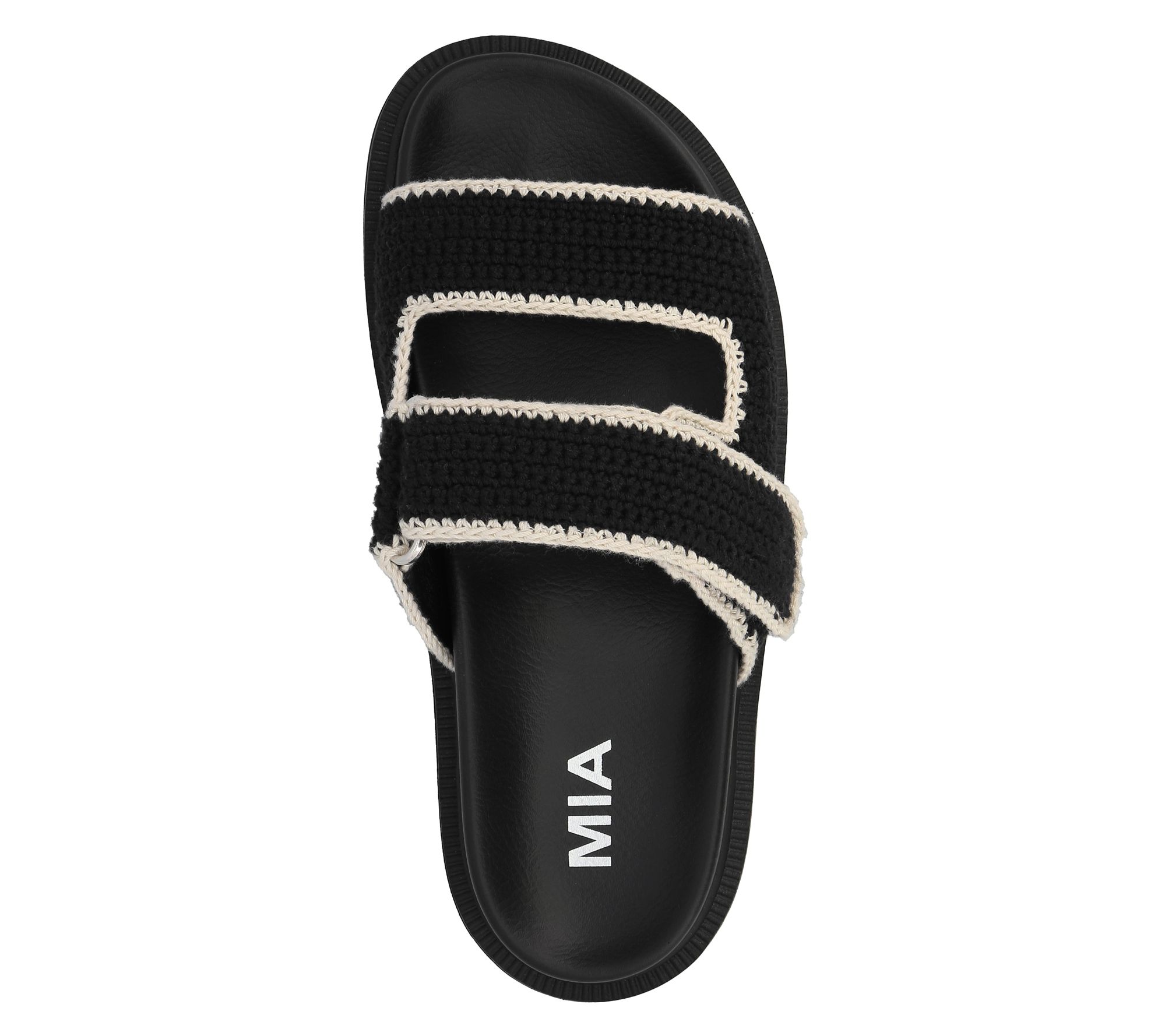 Whether you're strolling down the boardwalk or meeting friends for a casual brunch, these double strap slides promise effortless style and supreme comfort. The crochet upper adds a touch of playful texture, while the hook-and-loop closure ensures a secure fit. Paired with the signature footbed from MIA, you'll be walking on clouds all day long. From MIA.