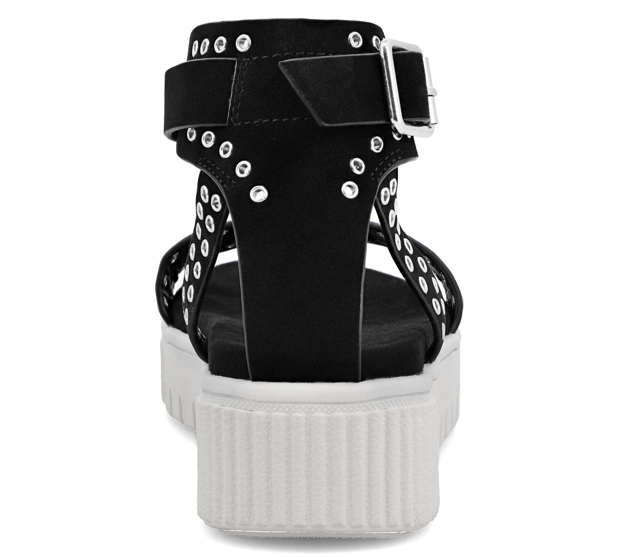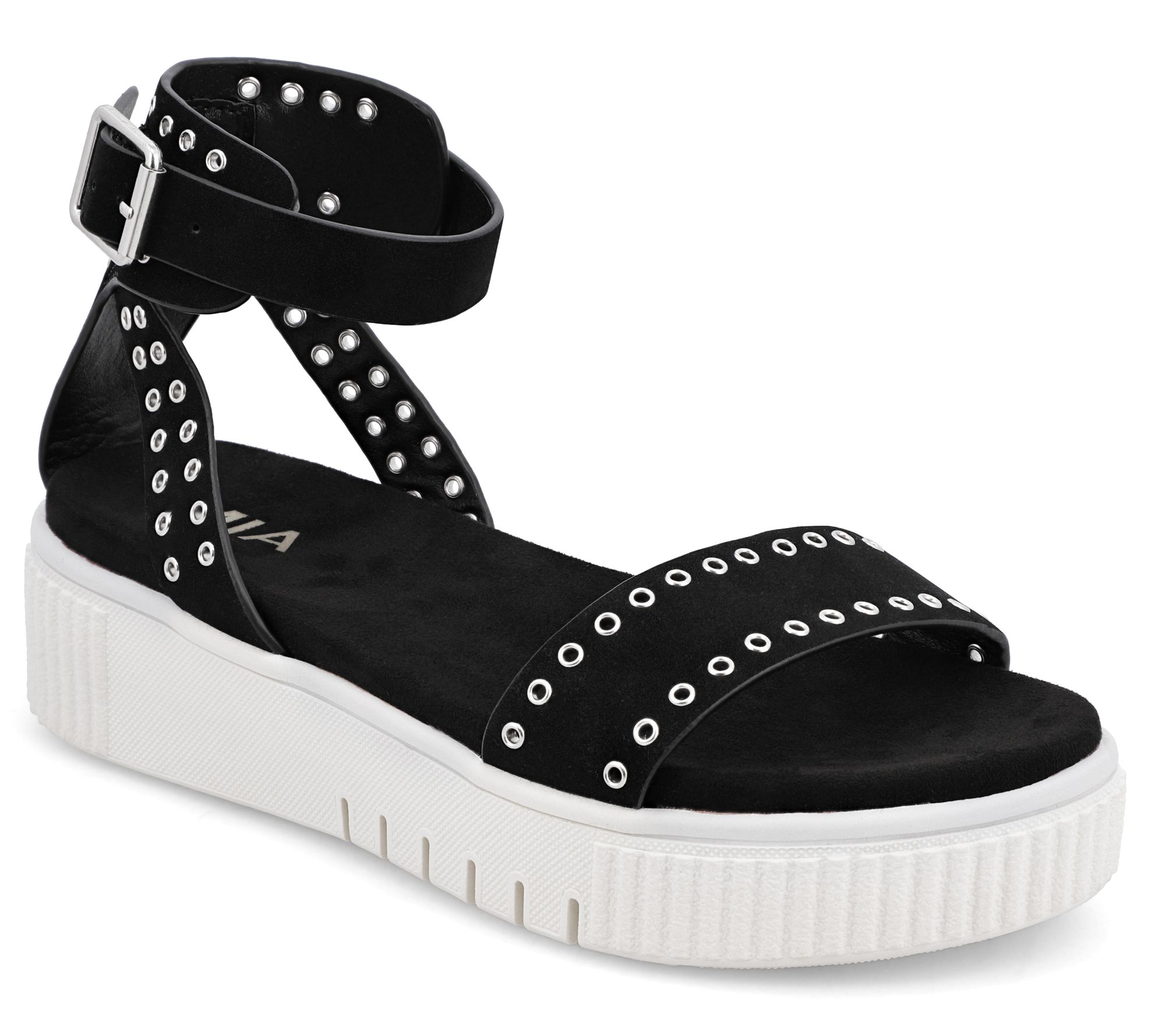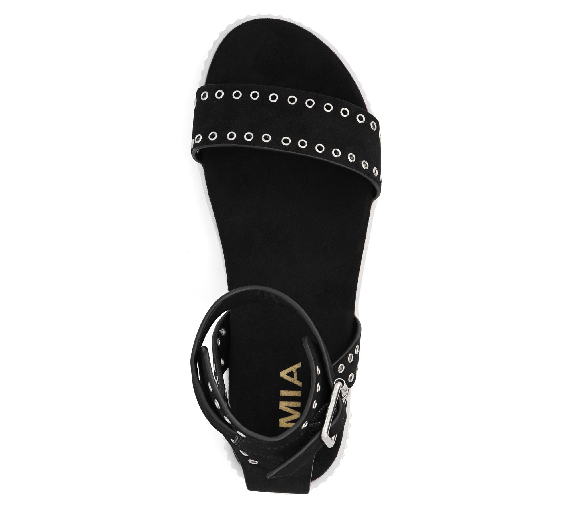 Elevate your spring and summer style with these grommeted platform sandals. Perfect for beach outings or casual brunches, these sandals offer edgy grommet details and a unique jagged sole for that extra flair. Coupled with a signature footbed, comfort meets fashion effortlessly. From MIA.