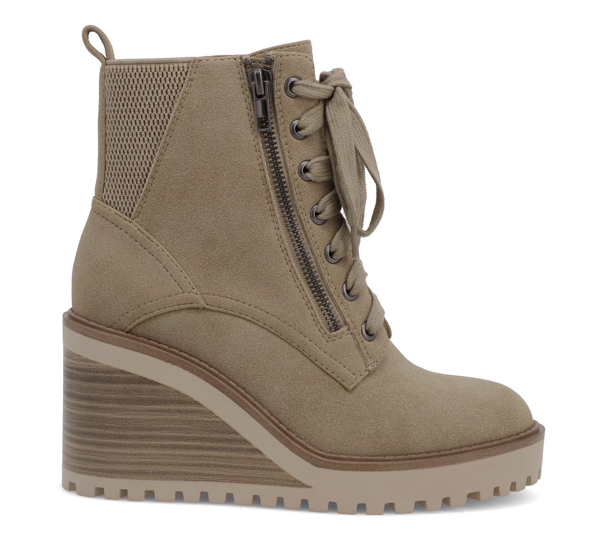 So fresh! These elevated combat boots feature lace-up details, elastic paneling for comfort, and a side zipper for easy wear. From MIA Shoes.