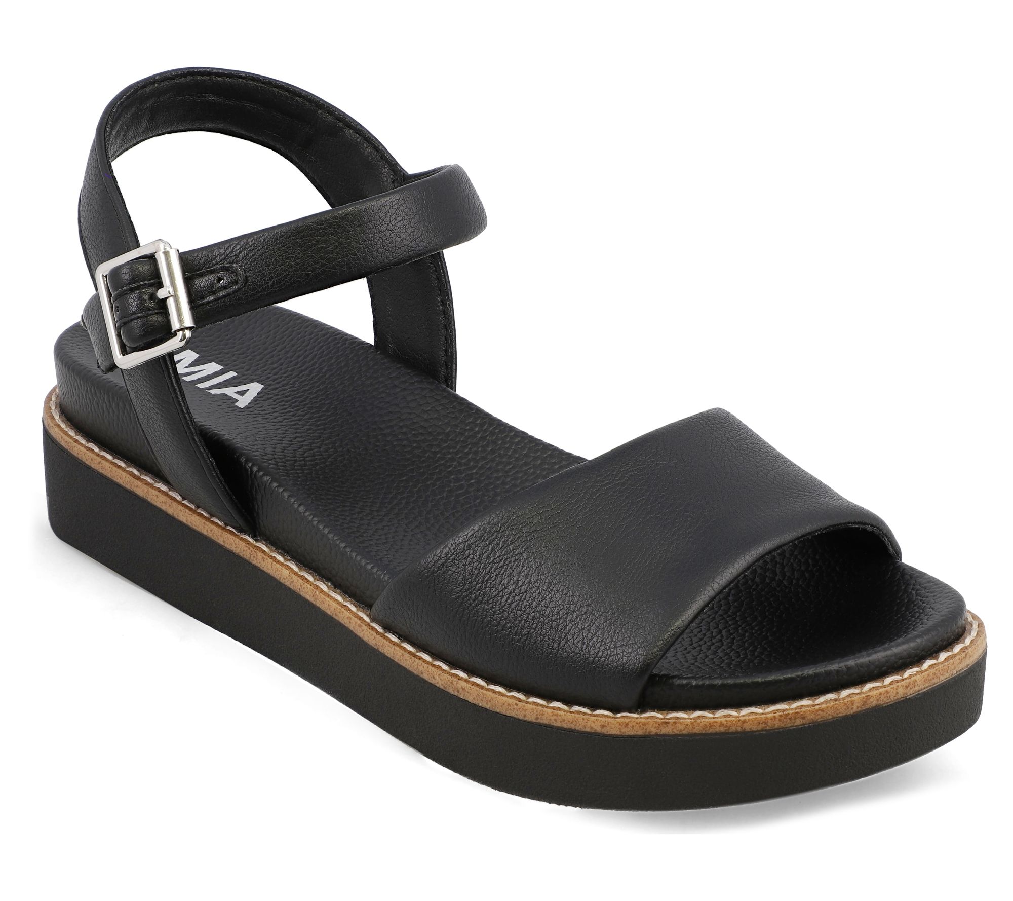 Slip into your favorite sundress and embrace the sunny season with these chic platform sandals. Featuring faux leather, these sandals offer both style and comfort as you run errands or meet up with friends. The adjustable buckle ensures a secure fit, and the signature MIA footbed provides all-day support. A versatile addition to your spring and summer wardrobe, you'll find yourself reaching for these sandals time and again. From MIA.