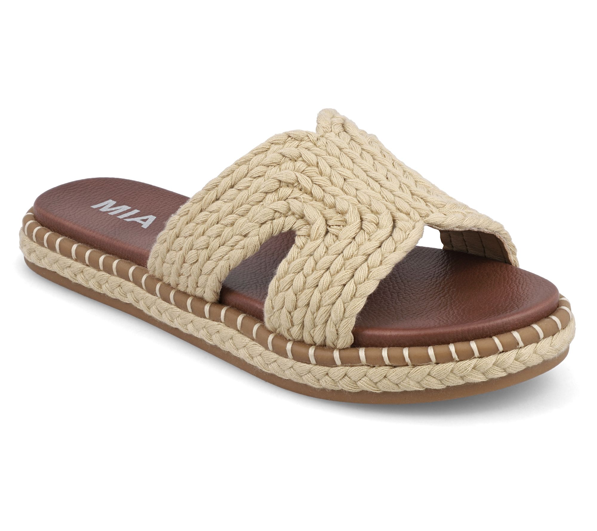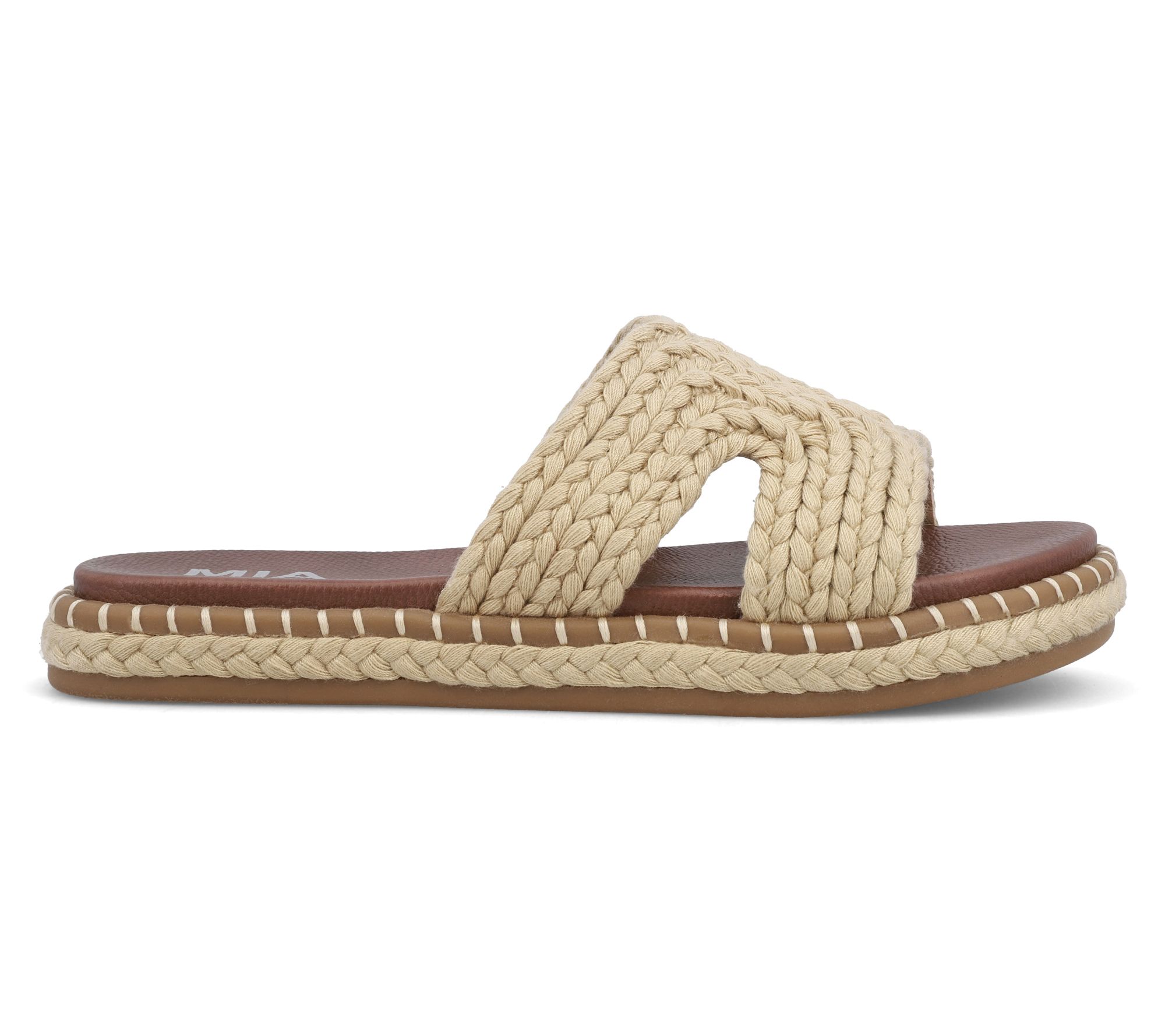 Transition seamlessly from the beach to a backyard barbecue in these stylish slide sandals. The braided woven upper offers a chic, breezy look, while the MIA signature footbed ensures comfort with every step. Pair them with your favorite sundress or jeans for a versatile addition to your spring and summer wardrobe. From MIA.
