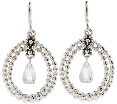 Michael Dawkins Sterling Drop Hoop Earrings with Crystal Quartz Drop