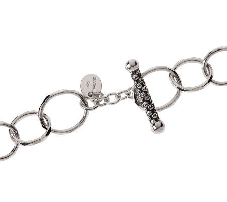 • Various sizes of highly polished, faceted oval links and double oval granulation links; oxidized finish on toggle bar and double links; textured snakeskin detail on toggle bar