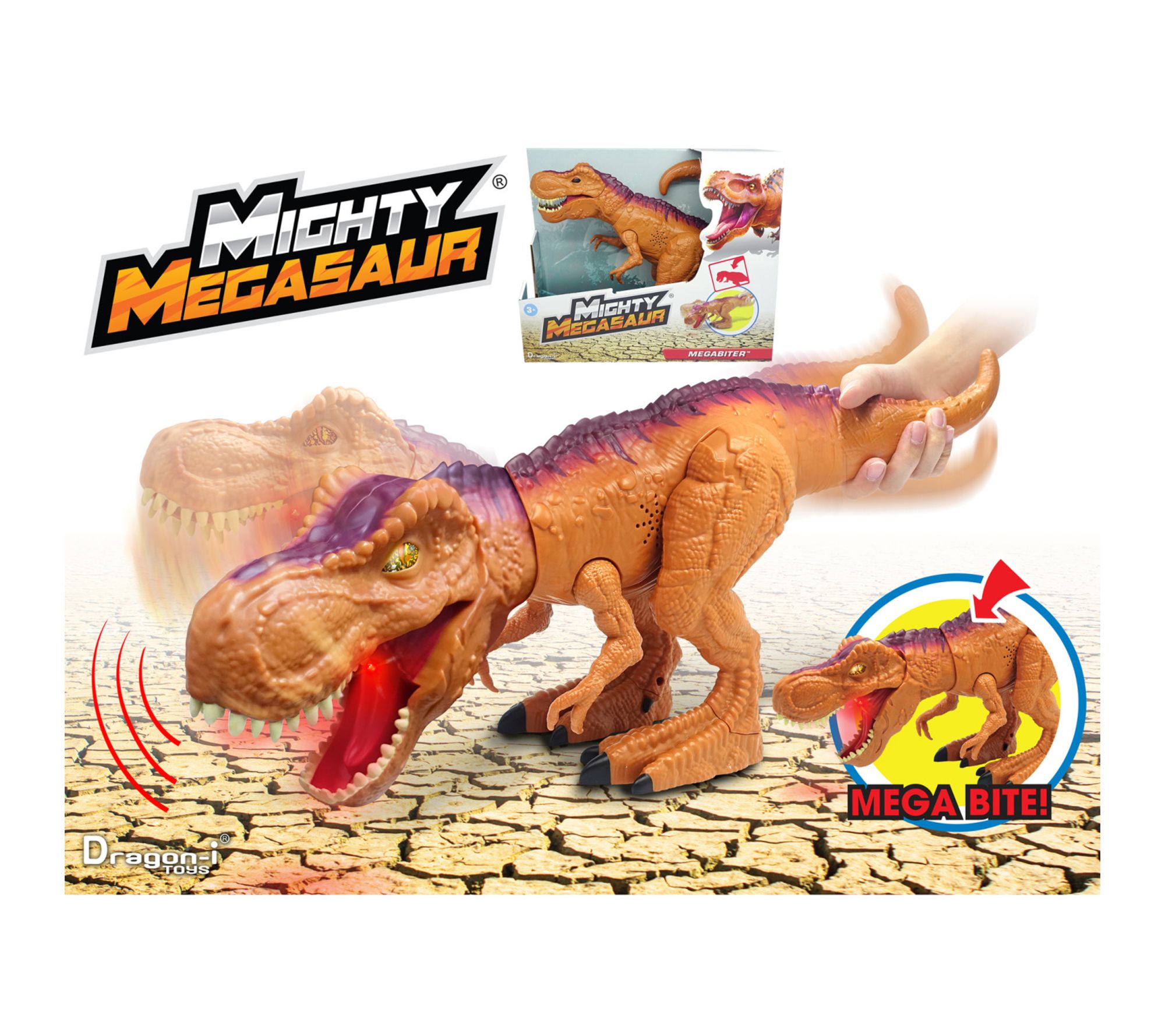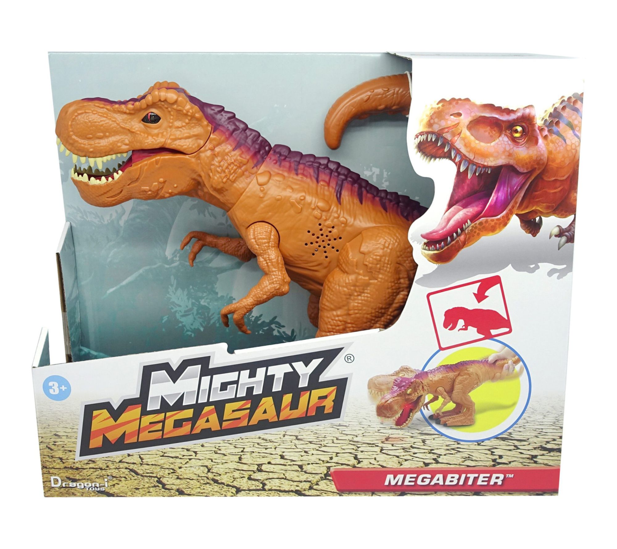 Bring the excitement of the Jurassic era to imaginative play with this action-packed Lights and Sounds Mighty Megasaur MegaBiter T-Rex. Tail activation lets the dino move its head and unleash a ferocious bite, while dynamic sound effects bring roaring adventures to life indoors or out. From Dragon-I Toys.