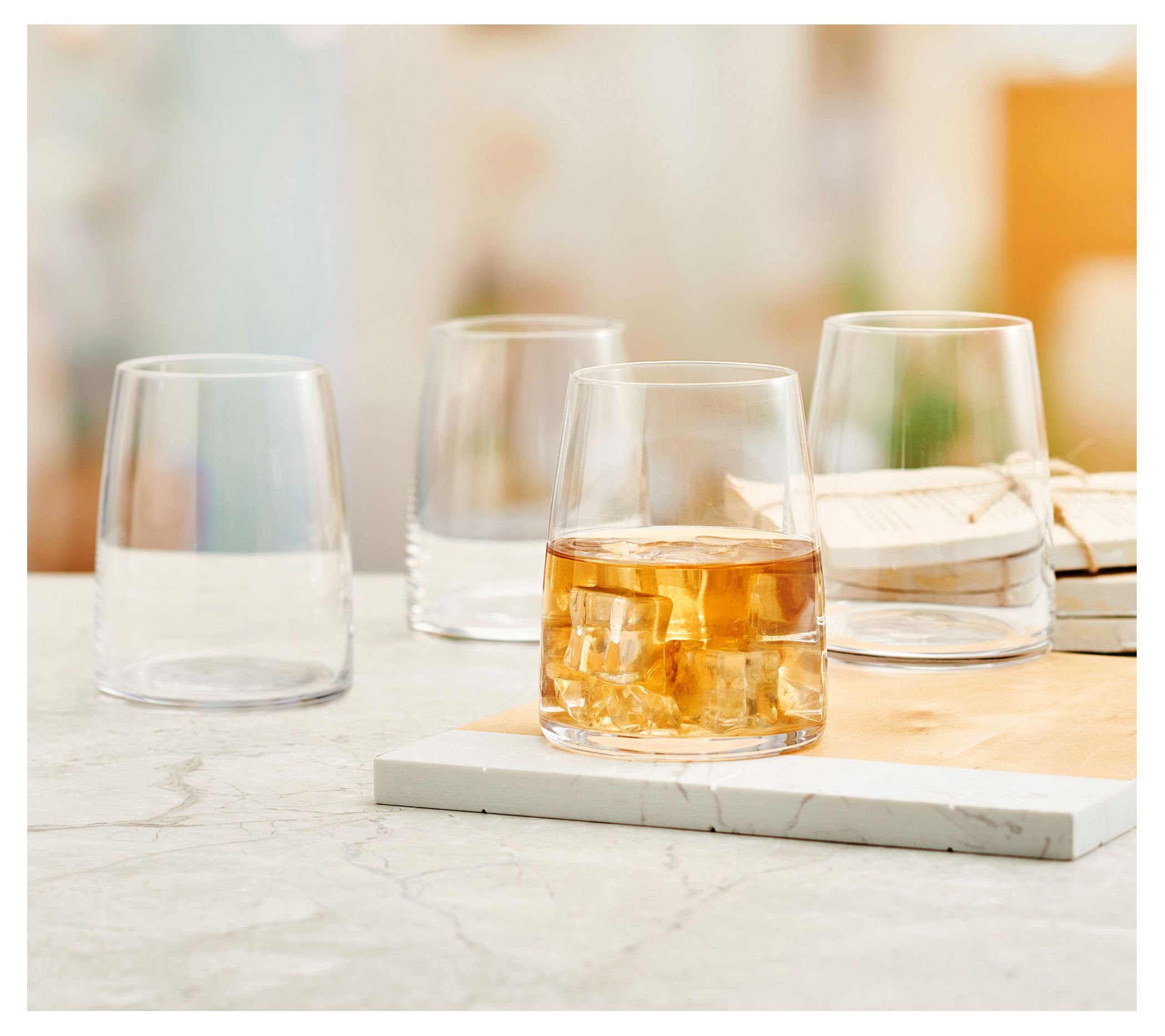 • Includes four 14-oz stemless wine double old-fashioned glasses Dishwasher-safe