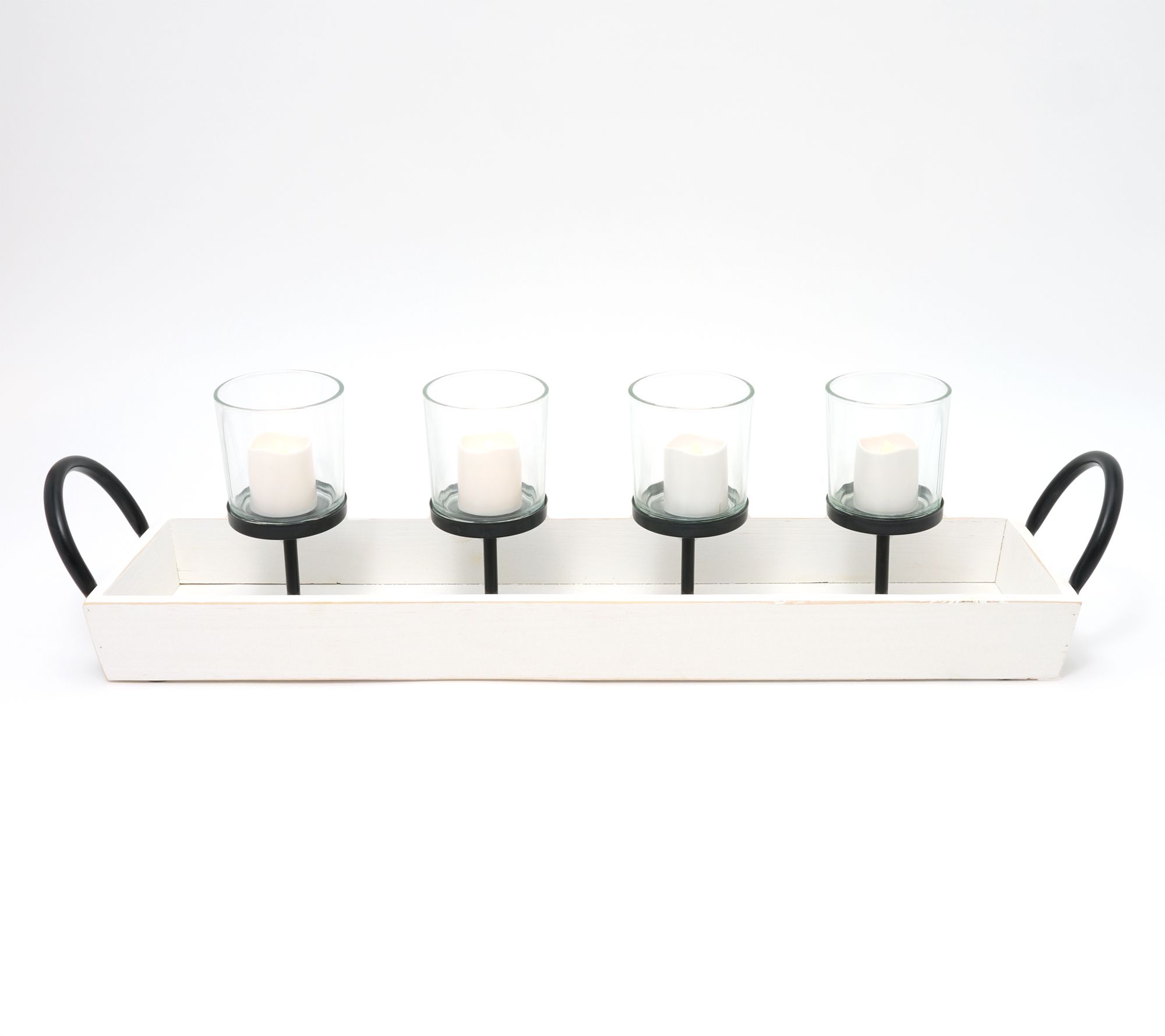 • Includes four LED candles in votive cups and base tray