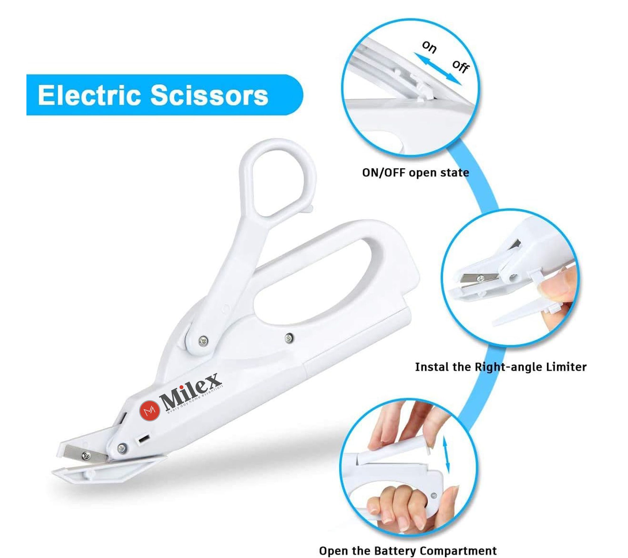 Milex Electric Scissors - Cordless Rechargeable Fabric Cutter