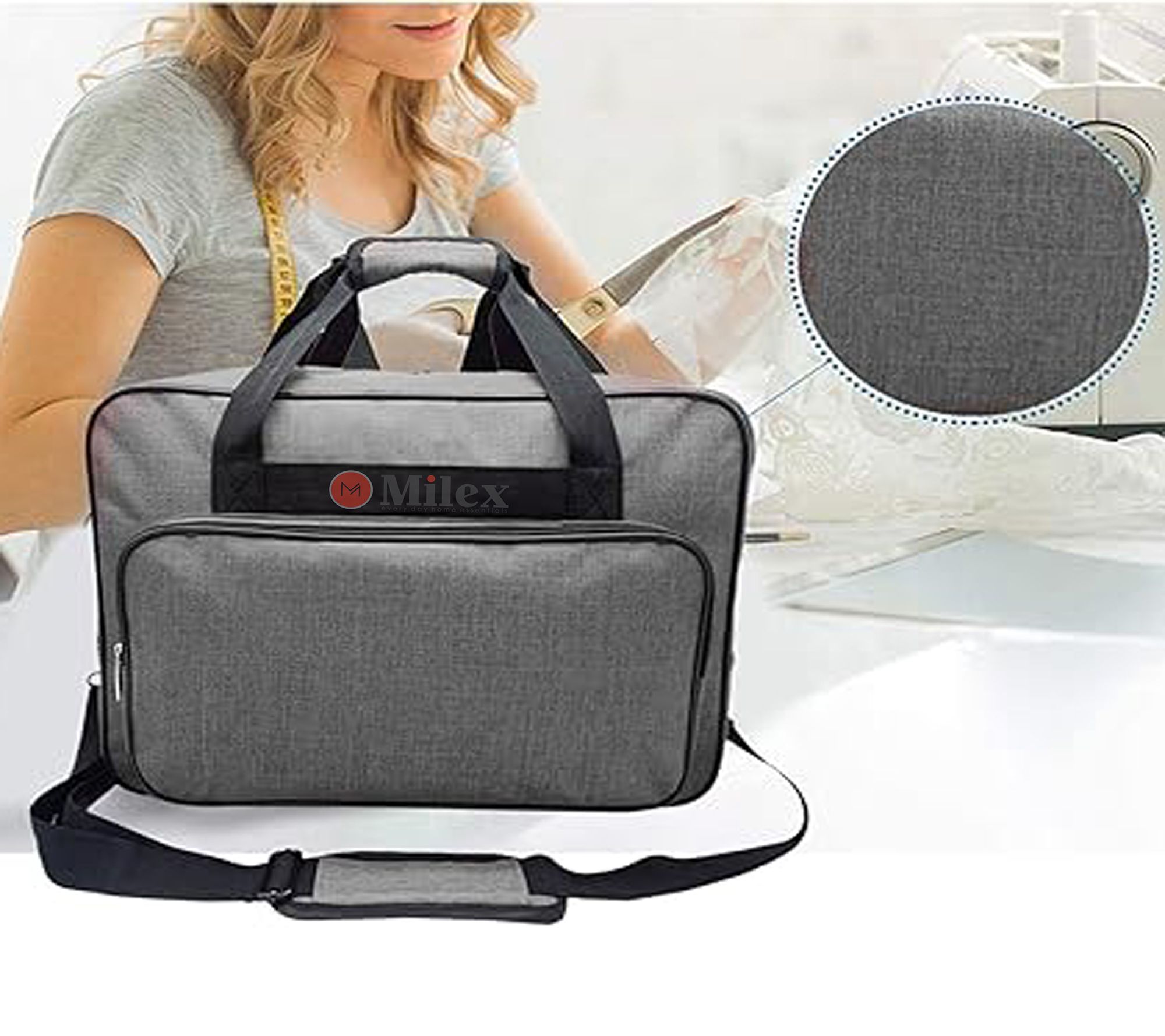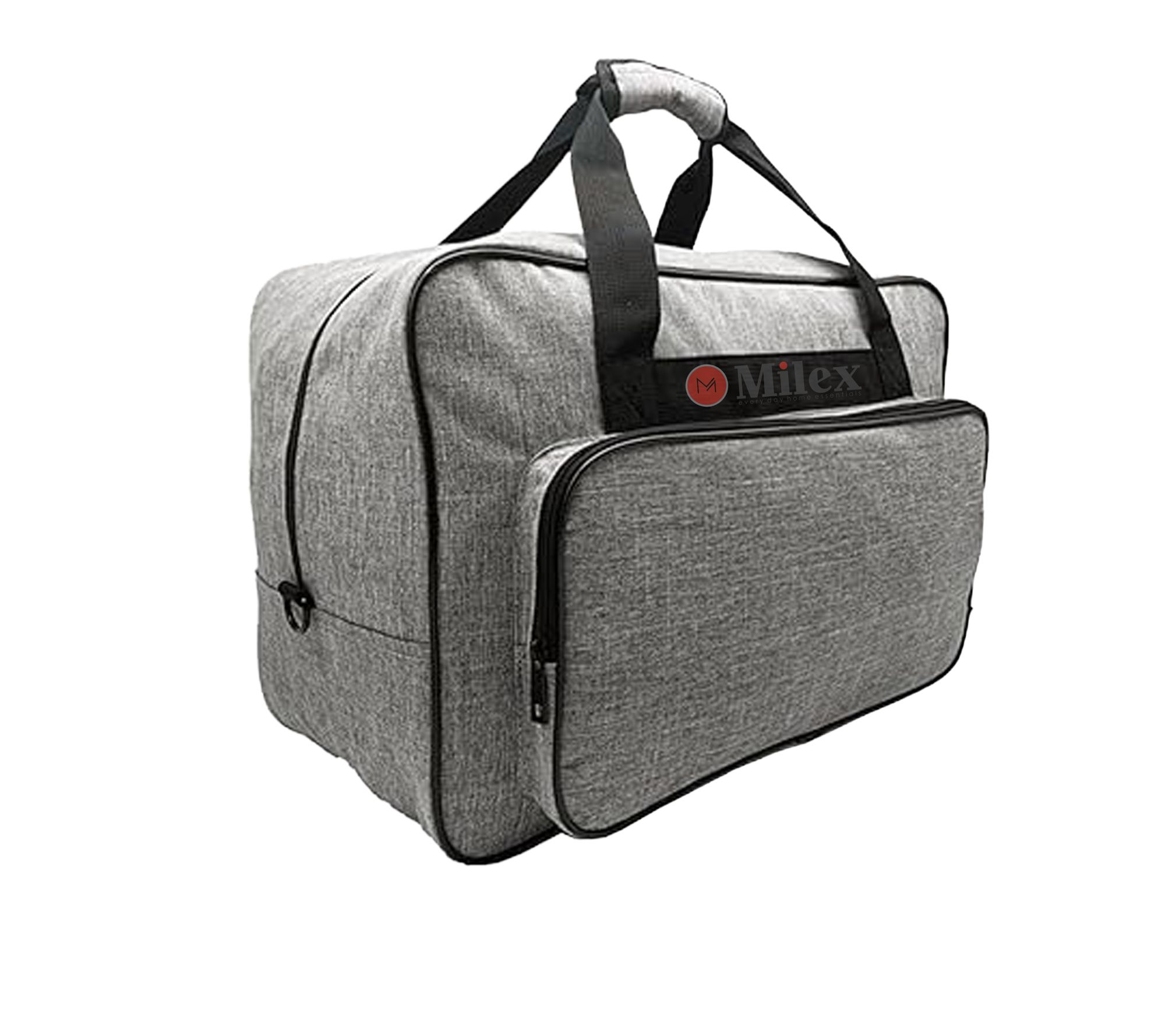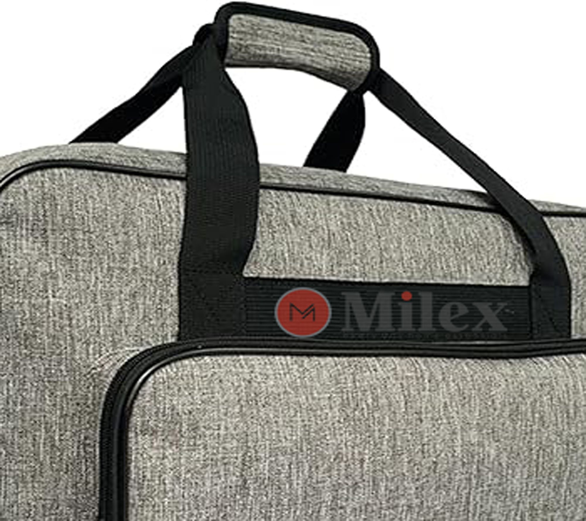 Transport your sewing machine and accessories with ease using this thoughtfully designed carrying case for sewing and quilting projects. It features a well-padded interior to help protect your machine, along with a large front pocket for storing your foot controller, cords, and essential tools. With sturdy handles and a full zipper, moving your supplies from home to class or craft group is simple and secure. From Milex.