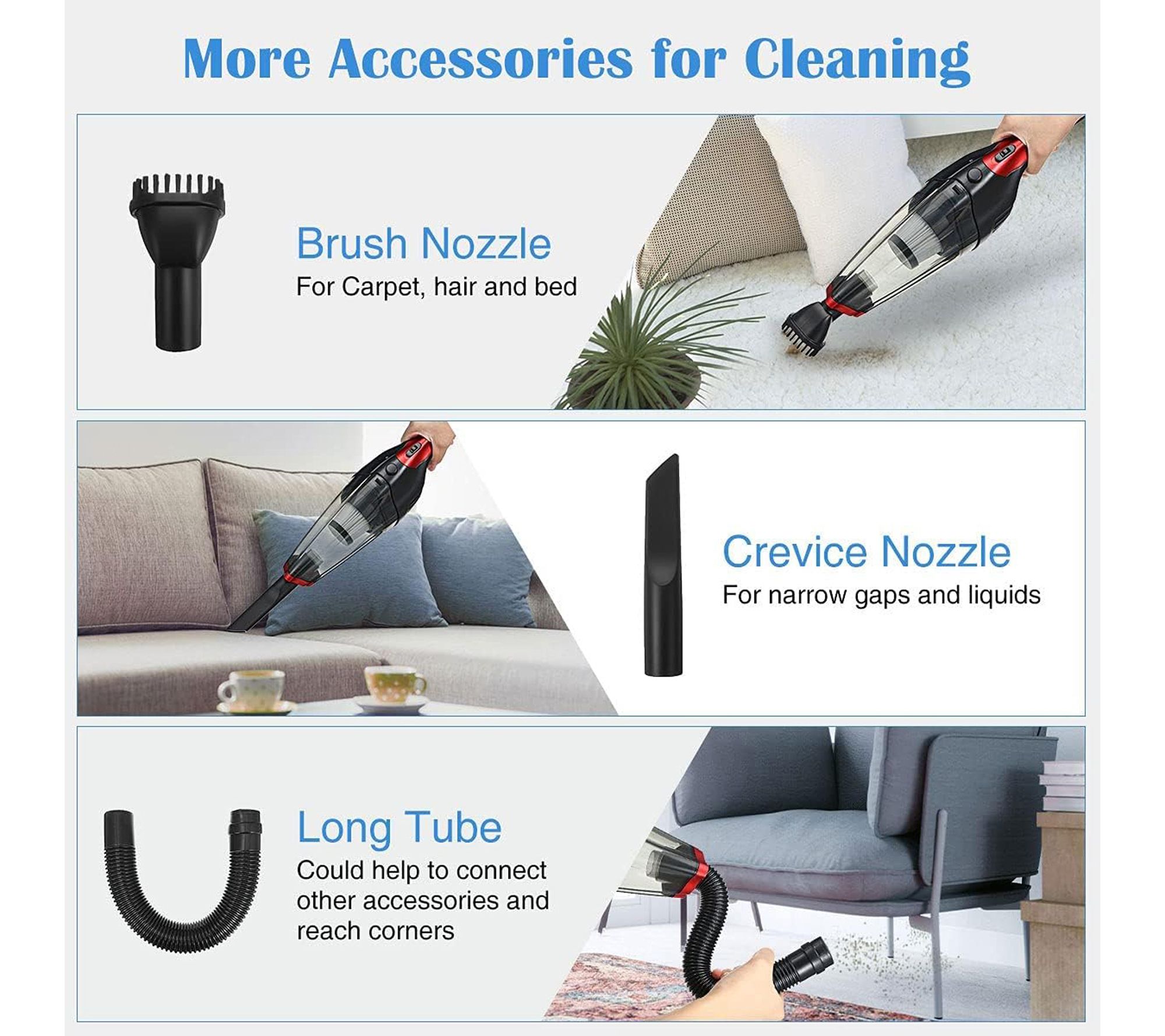 • Versatile 2-in-1 nozzle cleans corners, couches, and various surfaces