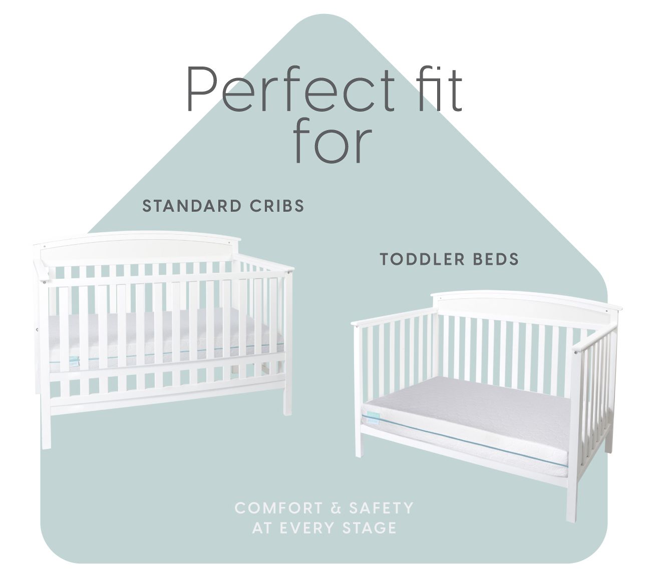 • Two-stage mattress with firm side for infants and softer side for toddlers