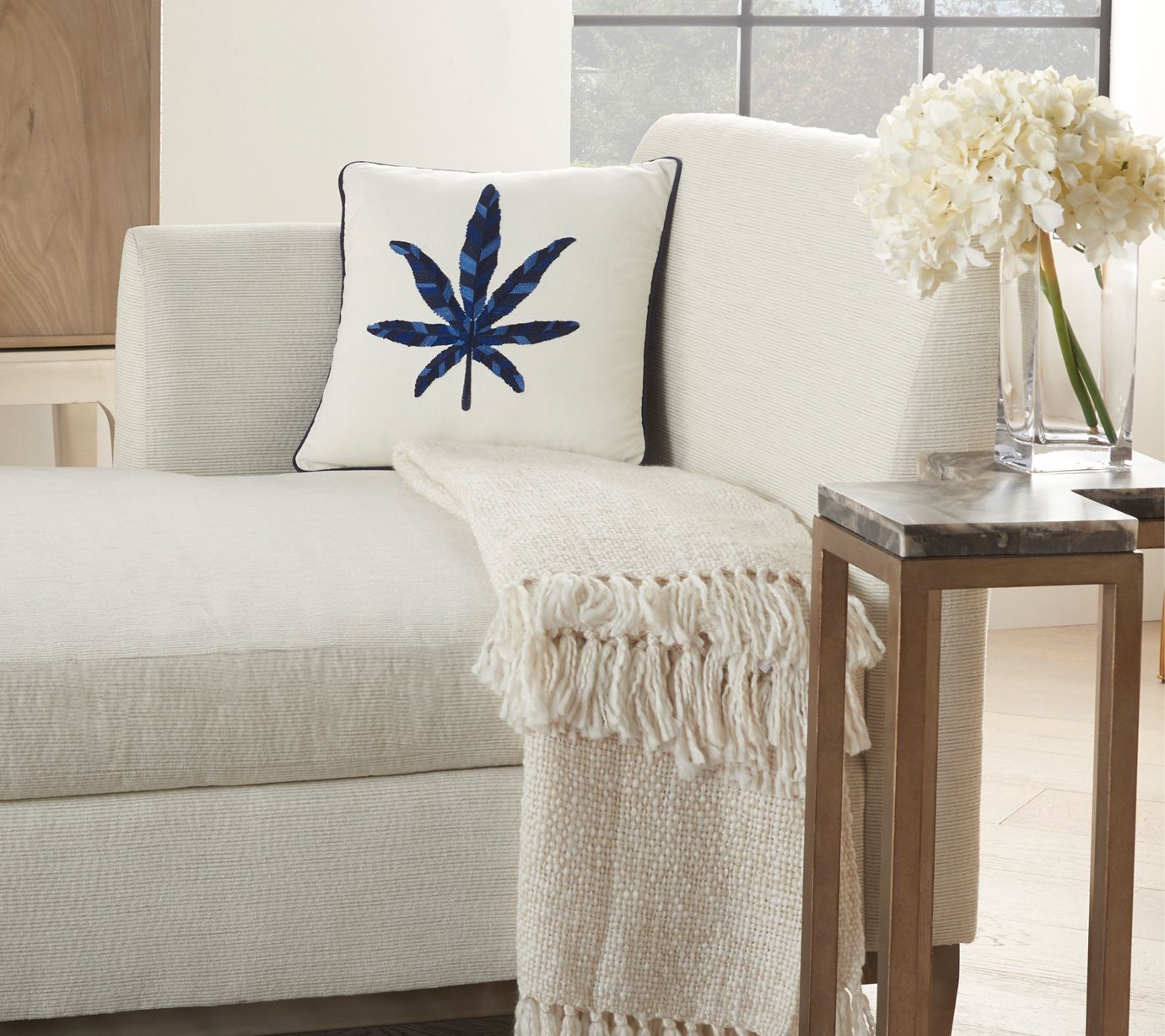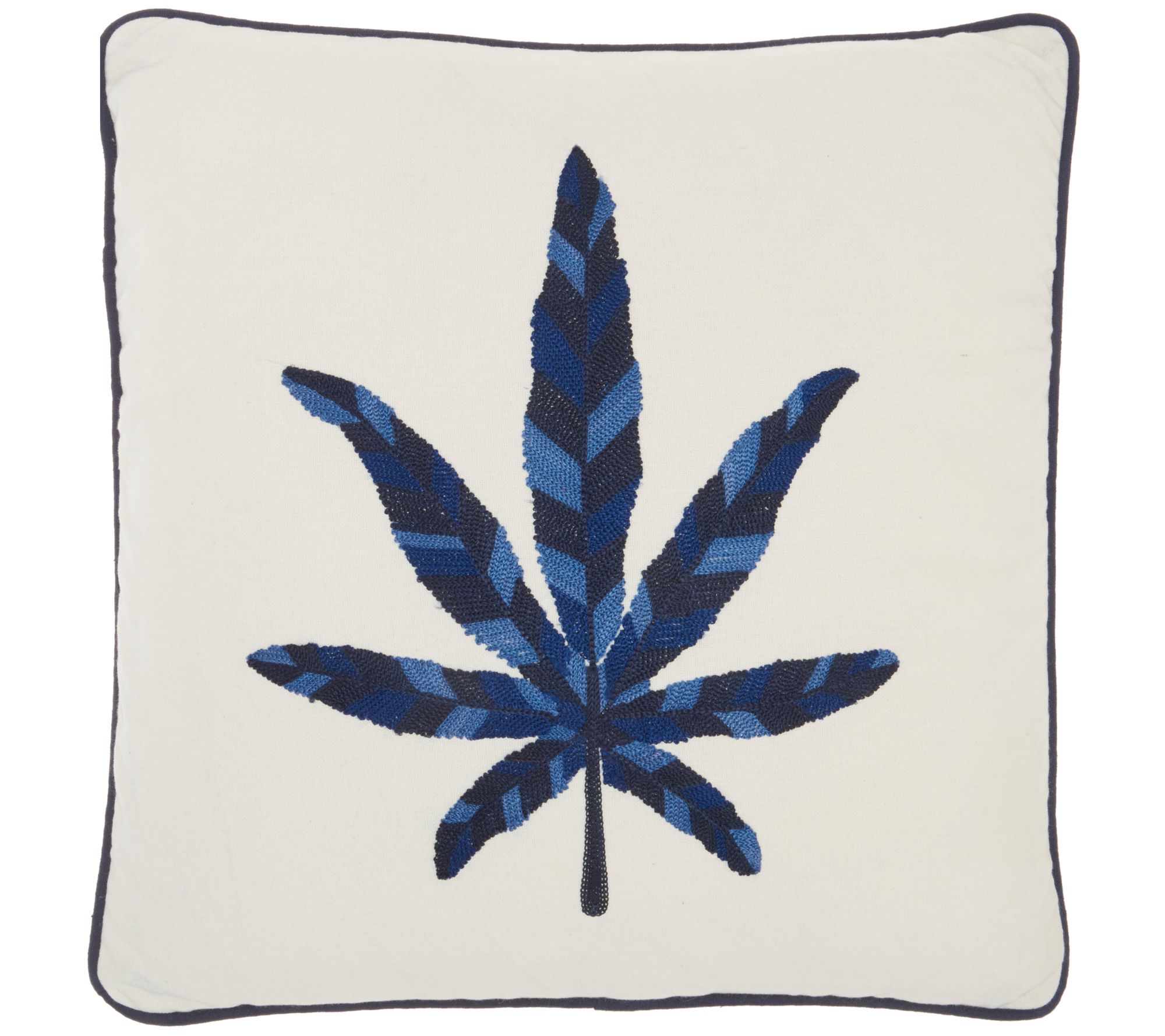 Get back to nature in a cozy, comfy way. This handcrafted, embroidered maple leaf throw pillow features neutral and soothing multi-tonal blues on a neutral ivory cotton cover. This modern-vibe pillow's hidden zipper means you can remove the cover for easy spot cleaning. From Mina Victory