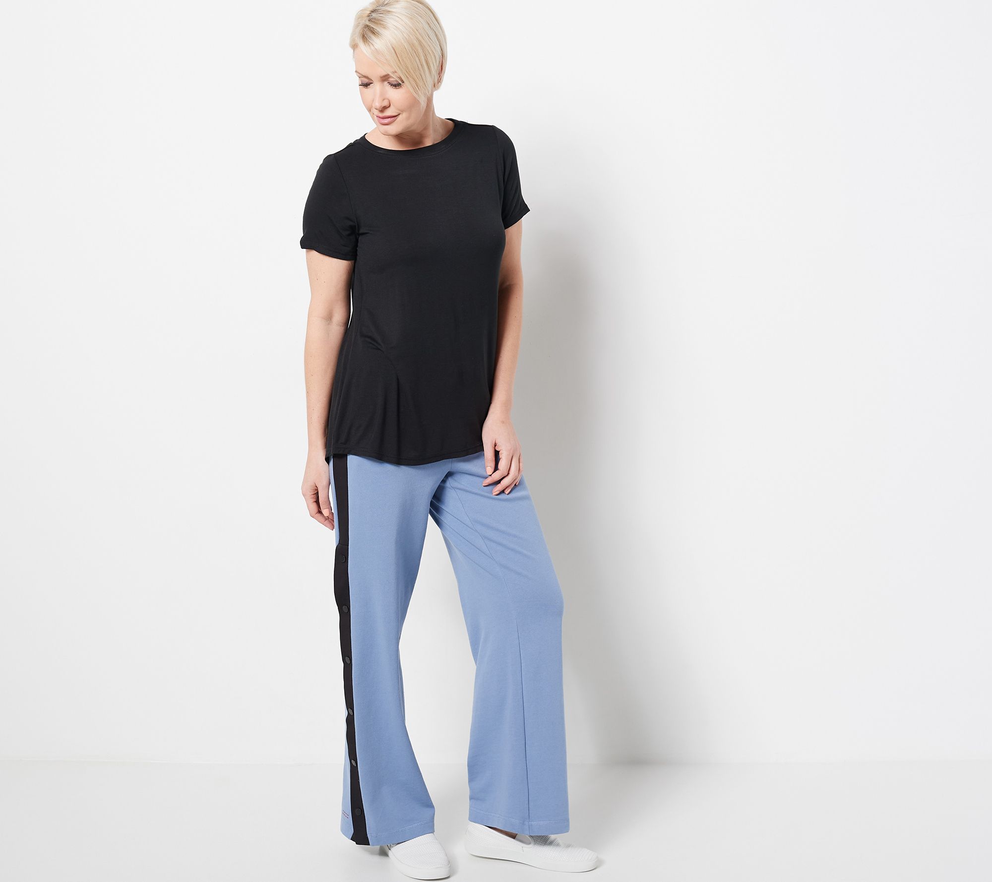 We love when the trends let us lounge...and these cozy pants totally do. With an in-style wide leg shape and adorable snap accents, you almost forget you're in comfy-wear, 'cause you look so cute...almost. From Peace Love World.