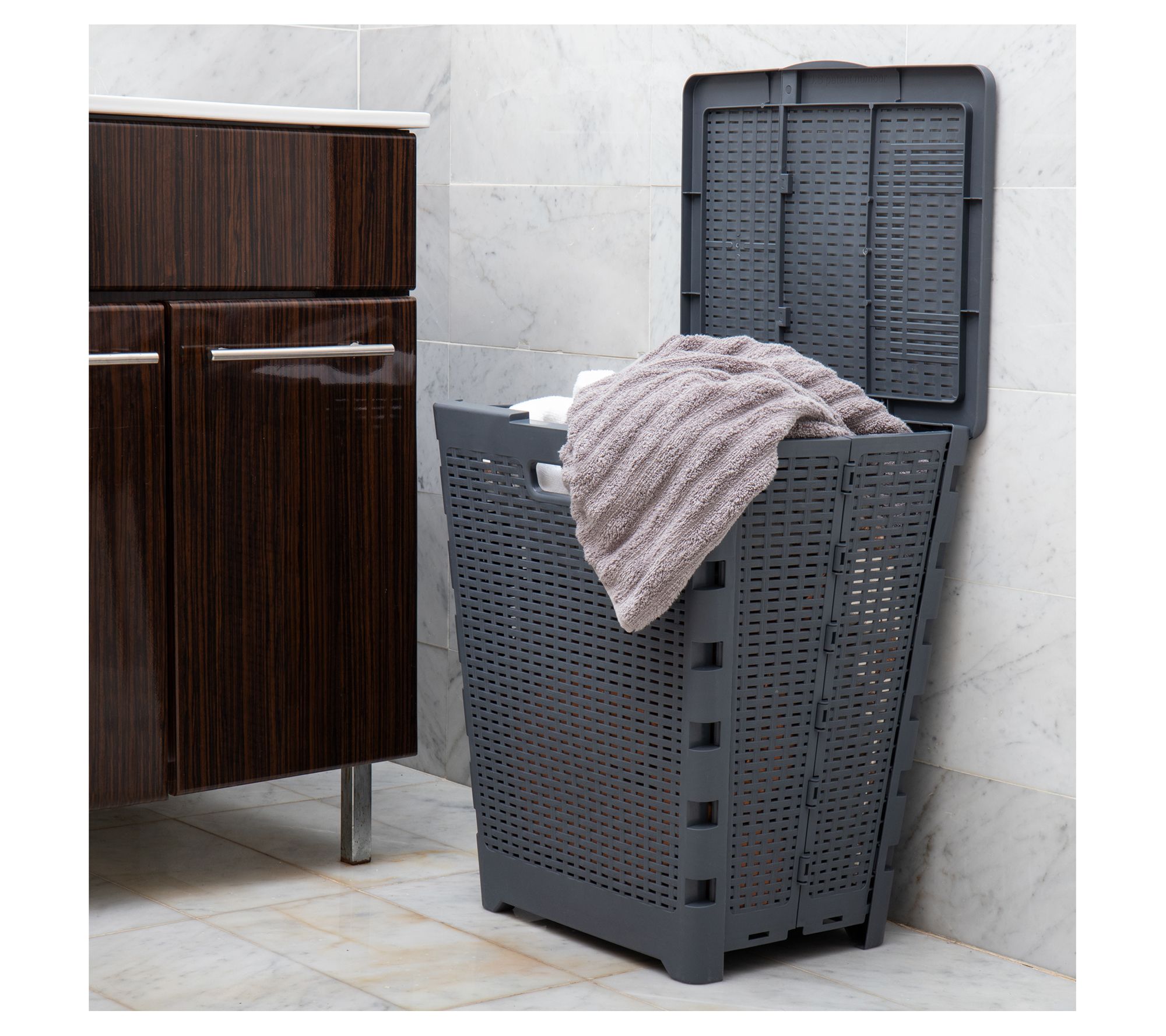 Tame that pile of dirty laundry with the help of this stylish folding hamper. Durably constructed and incredibly spacious, it keeps your clothes neat and contained until you're ready to wash them. From Mind Reader.