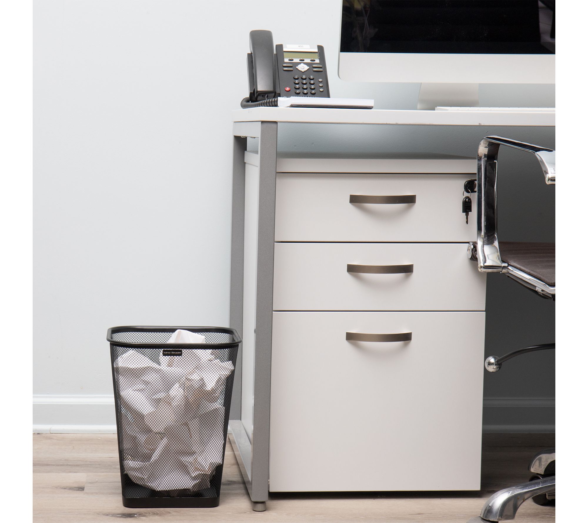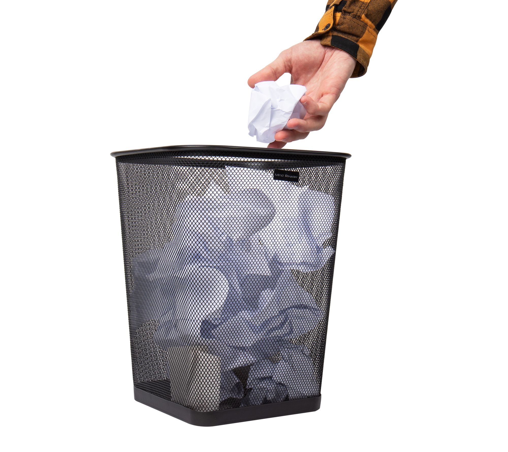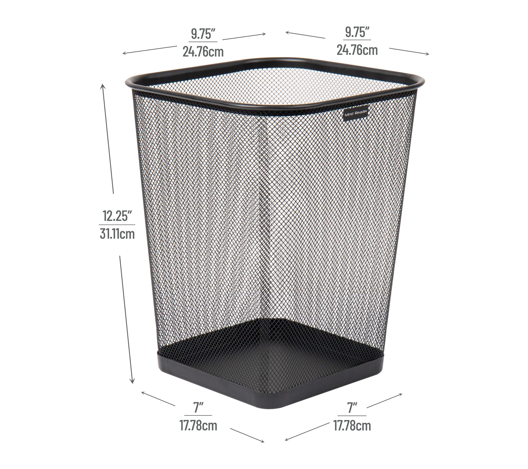 Keep your space neat and modern with this set of two Mind Reader mesh waste bins, perfect for organizing trash or recycling in the office, kitchen, or bathroom. The ventilated metal mesh helps minimize odors, while the sturdy steel construction and rolled rim provide a sleek touch and easy handling. Use them together or separately to add functional style wherever you need it. From Mind Reader.