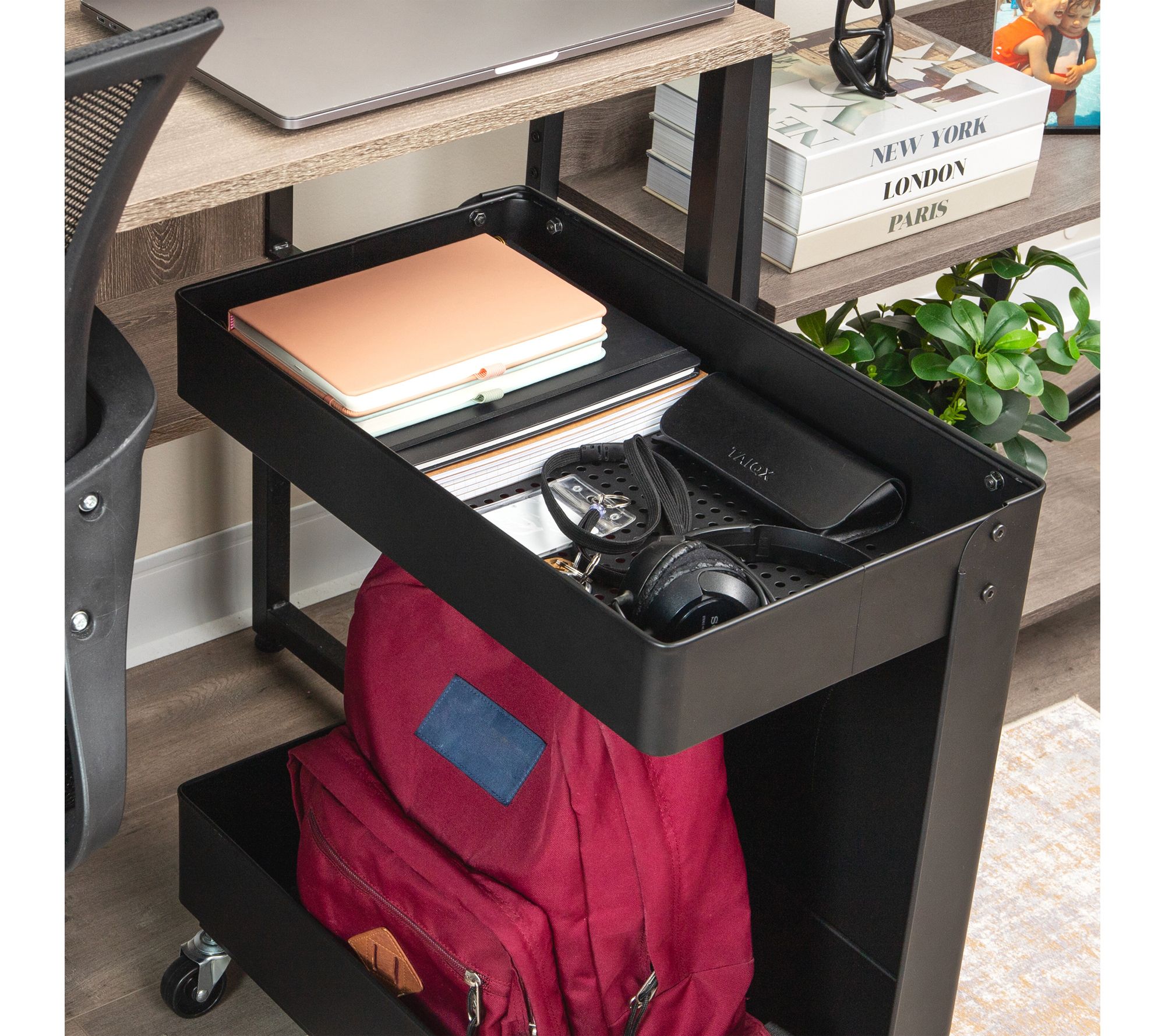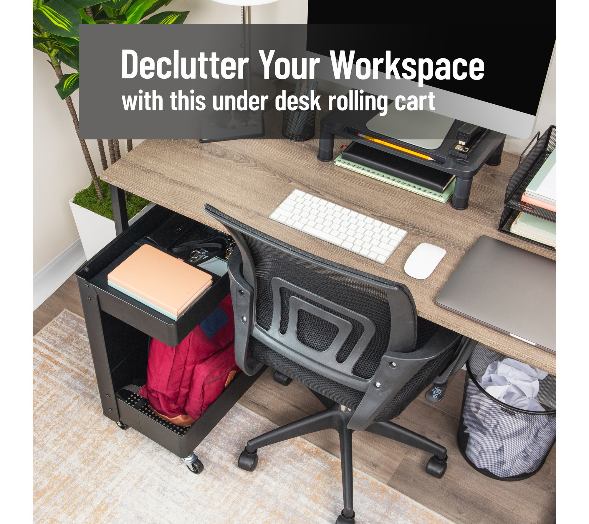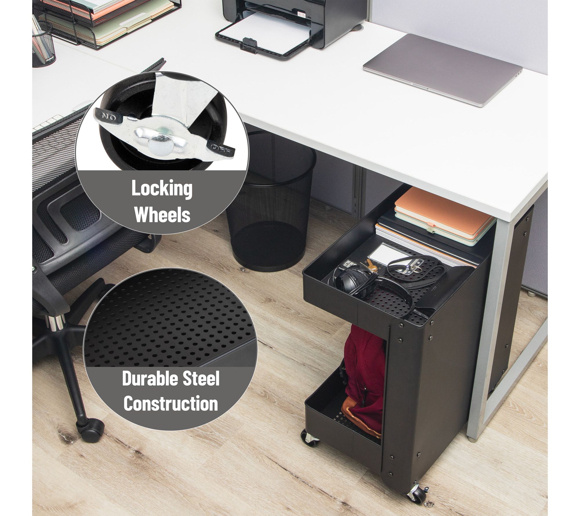 Mind Reader 2-Tier Under Desk Rolling Cart, Black