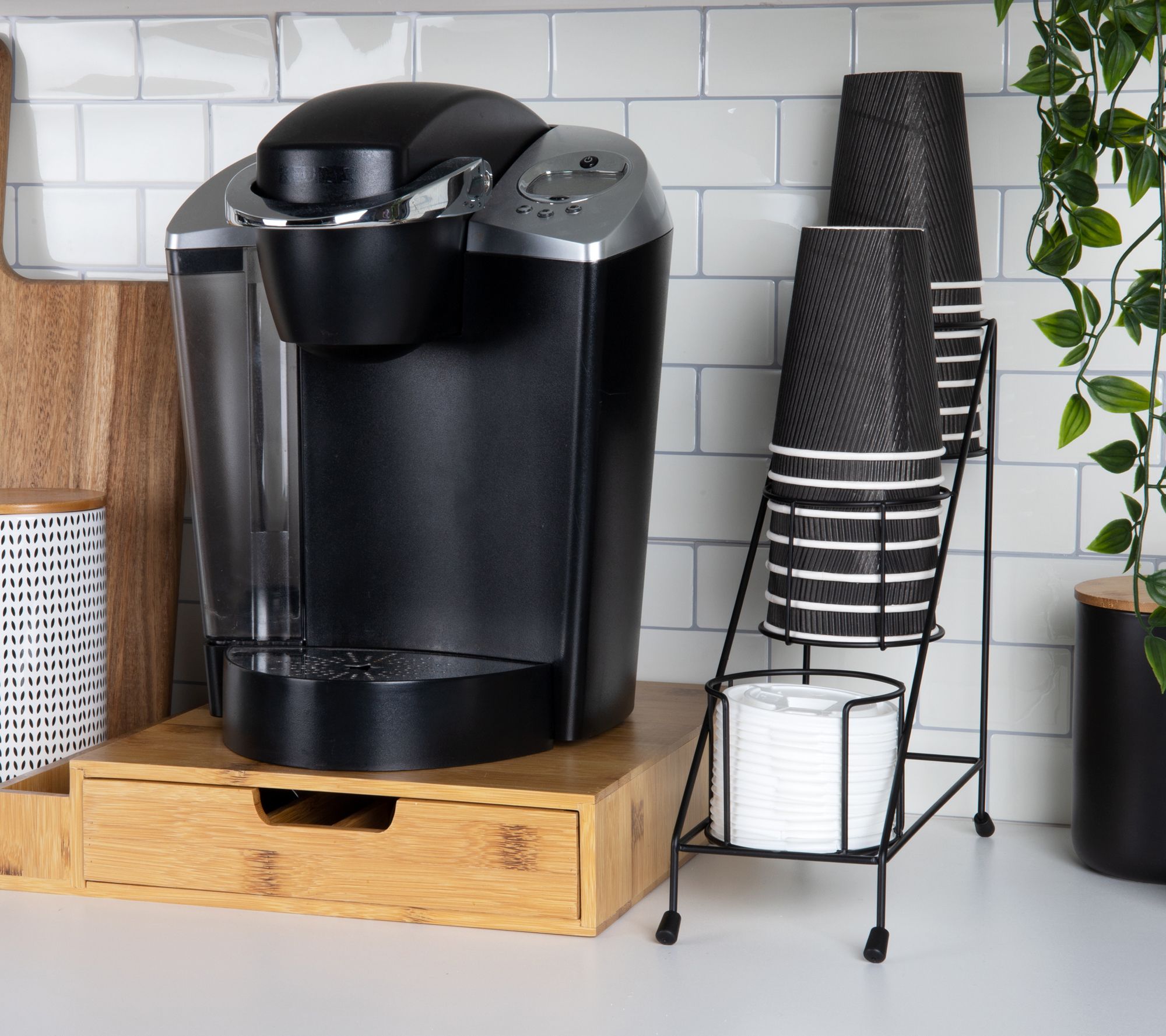 Want to display a few bottles of liquor for company? How about just having syrup or salad dressing on the table? Look no further than this triple-slot bottle organizer. The handy design makes it easy to read labels and see if bottles are running low. Plus, there's a dedicated area below for stacking napkins. From Mind Reader.