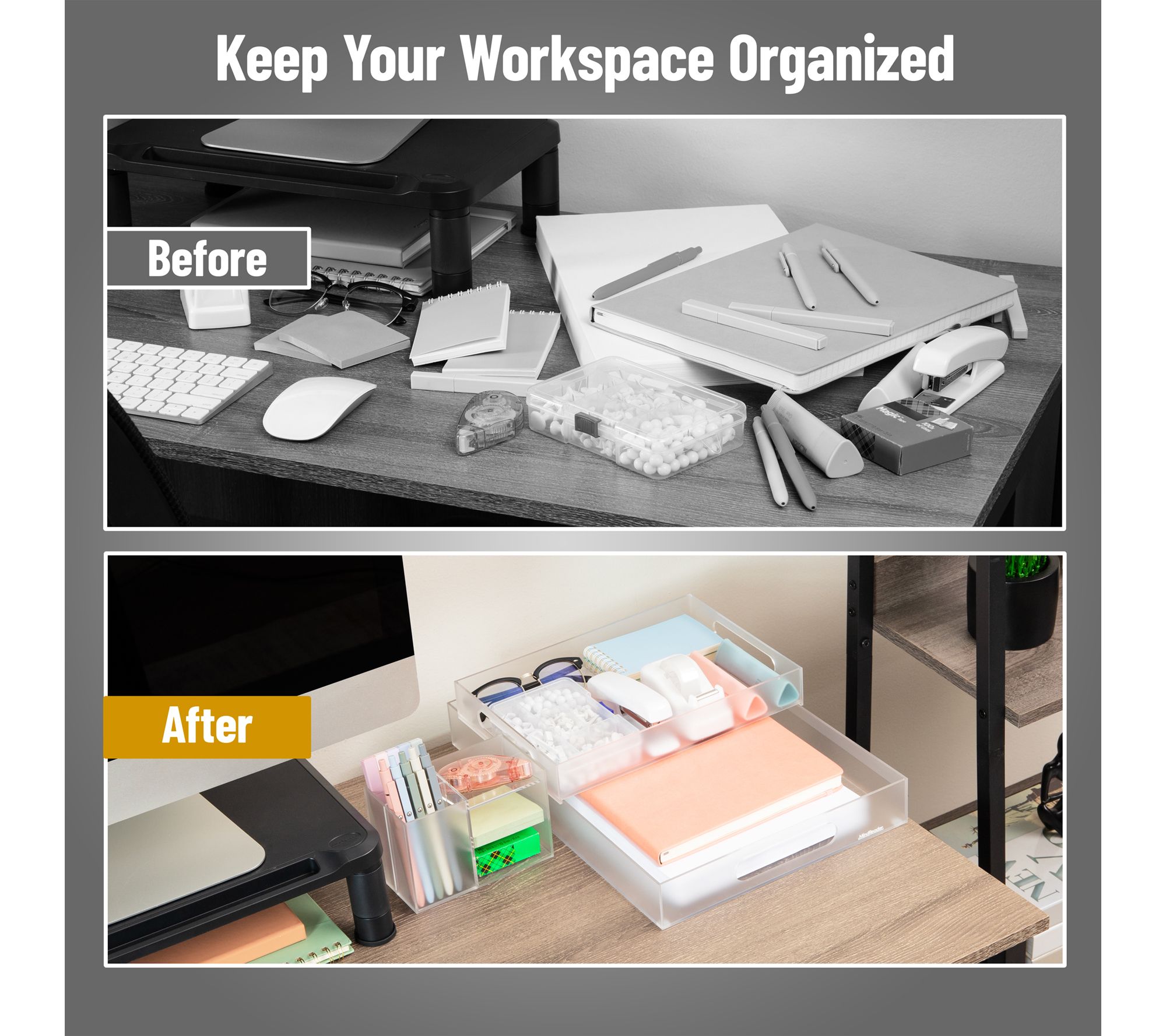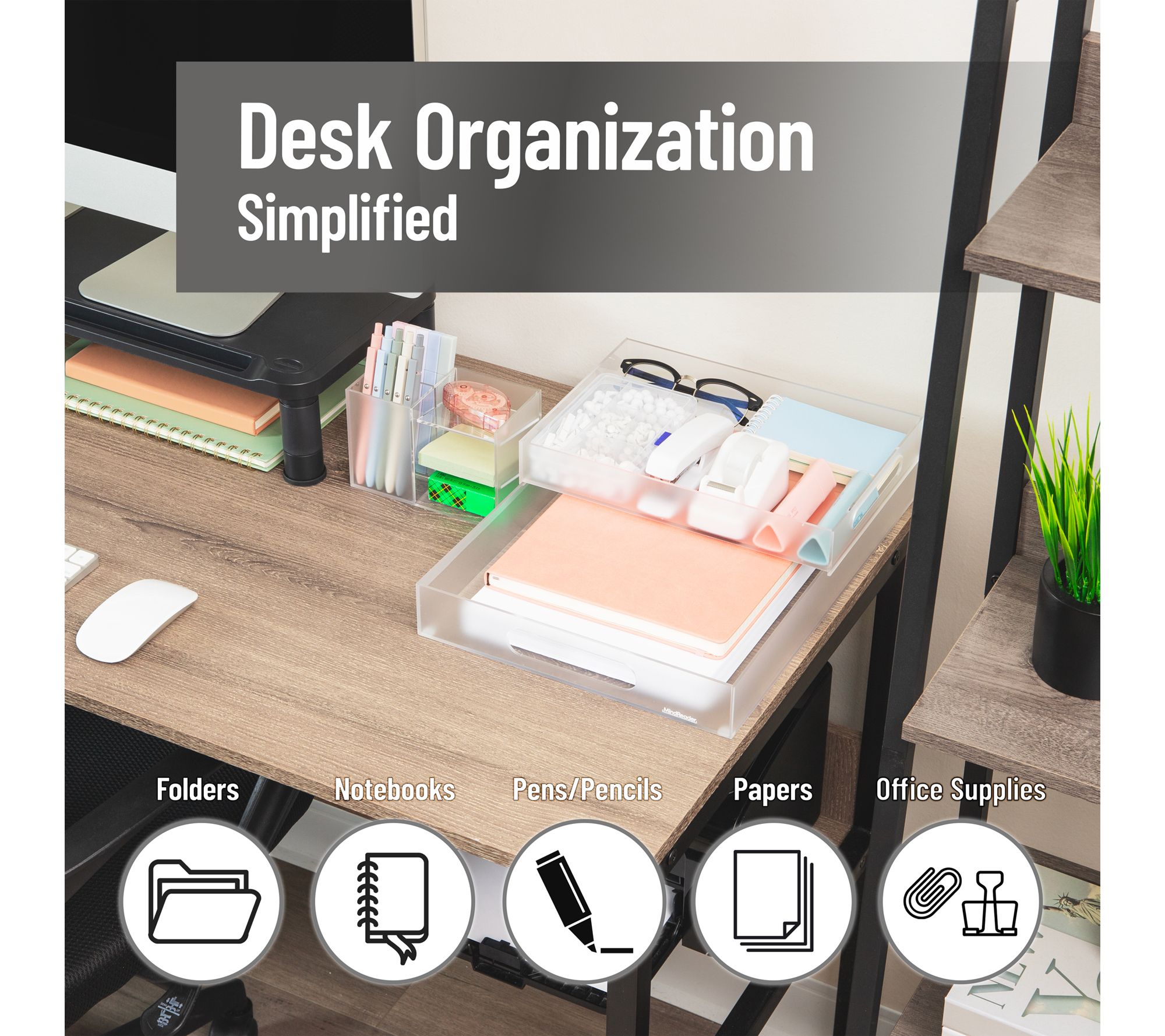 Mind Reader 3-Piece Acrylic Desktop Organizer Set, Clear