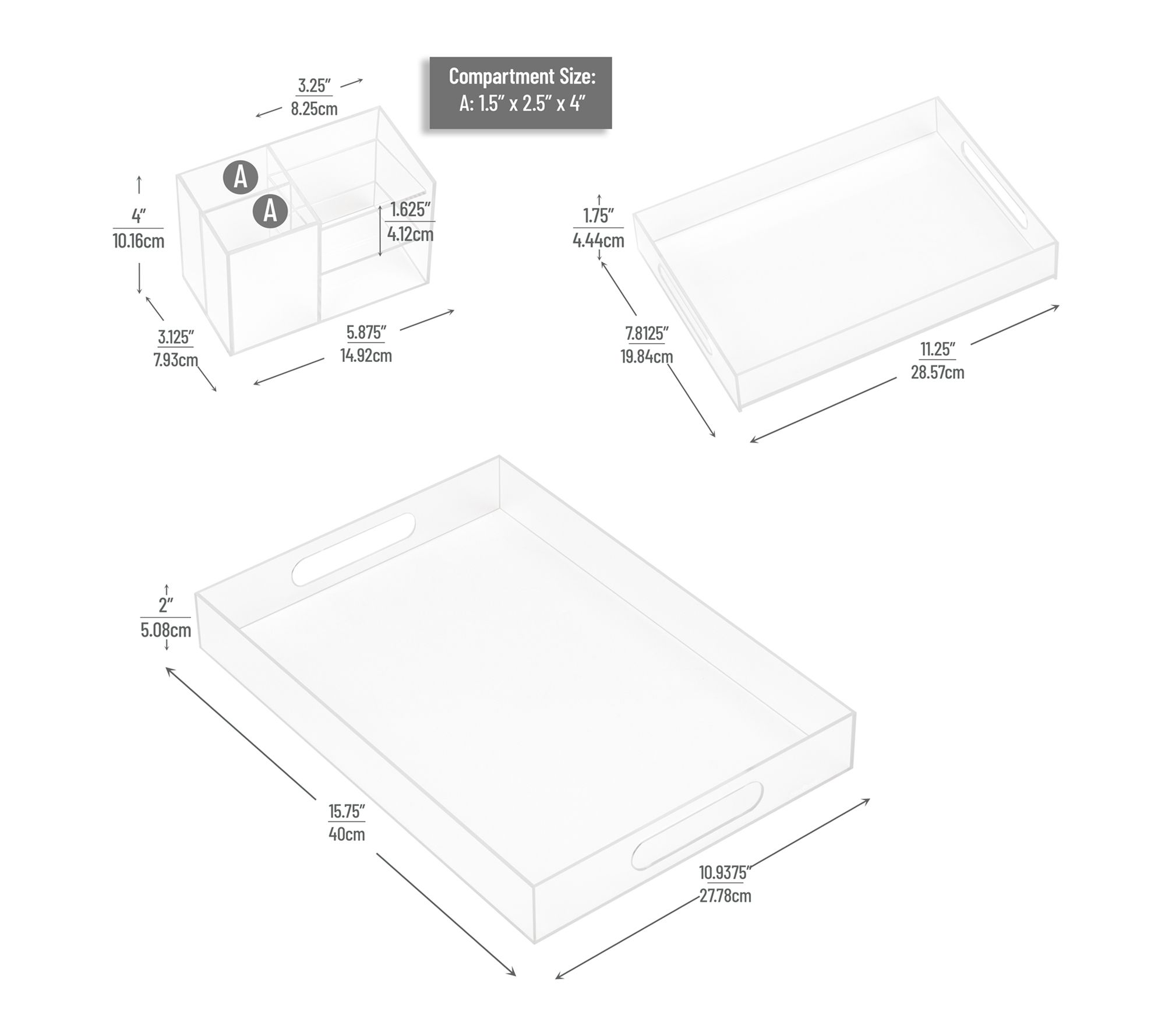 • Large tray measures 10.973" x 15.75" x 2"