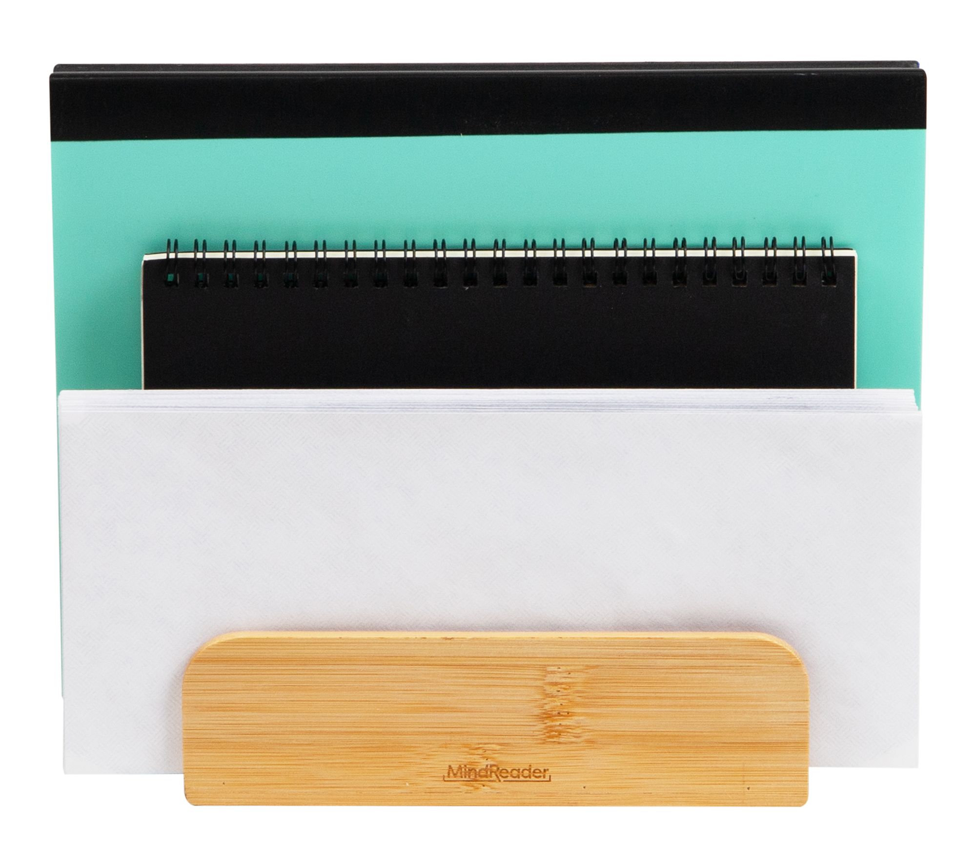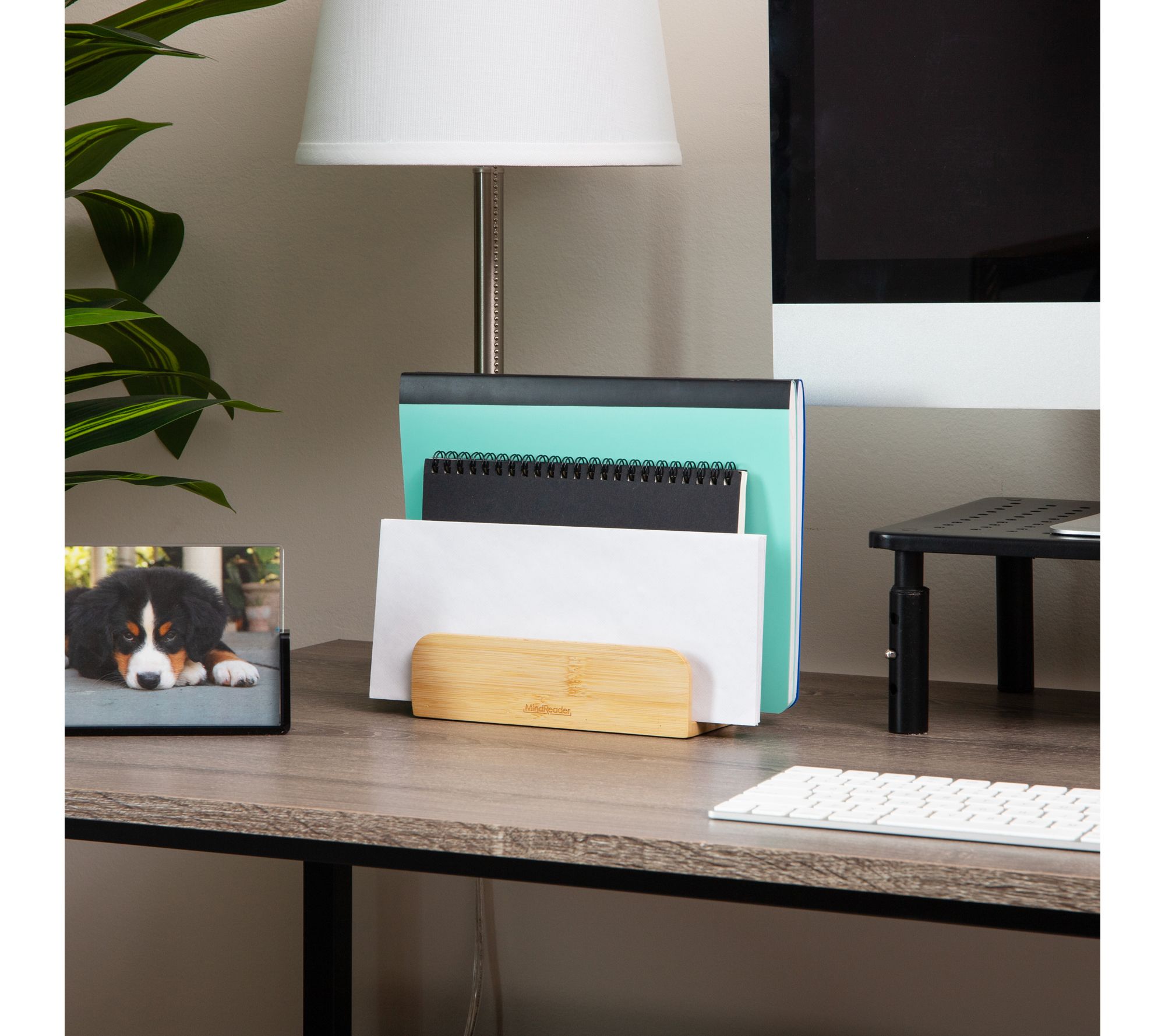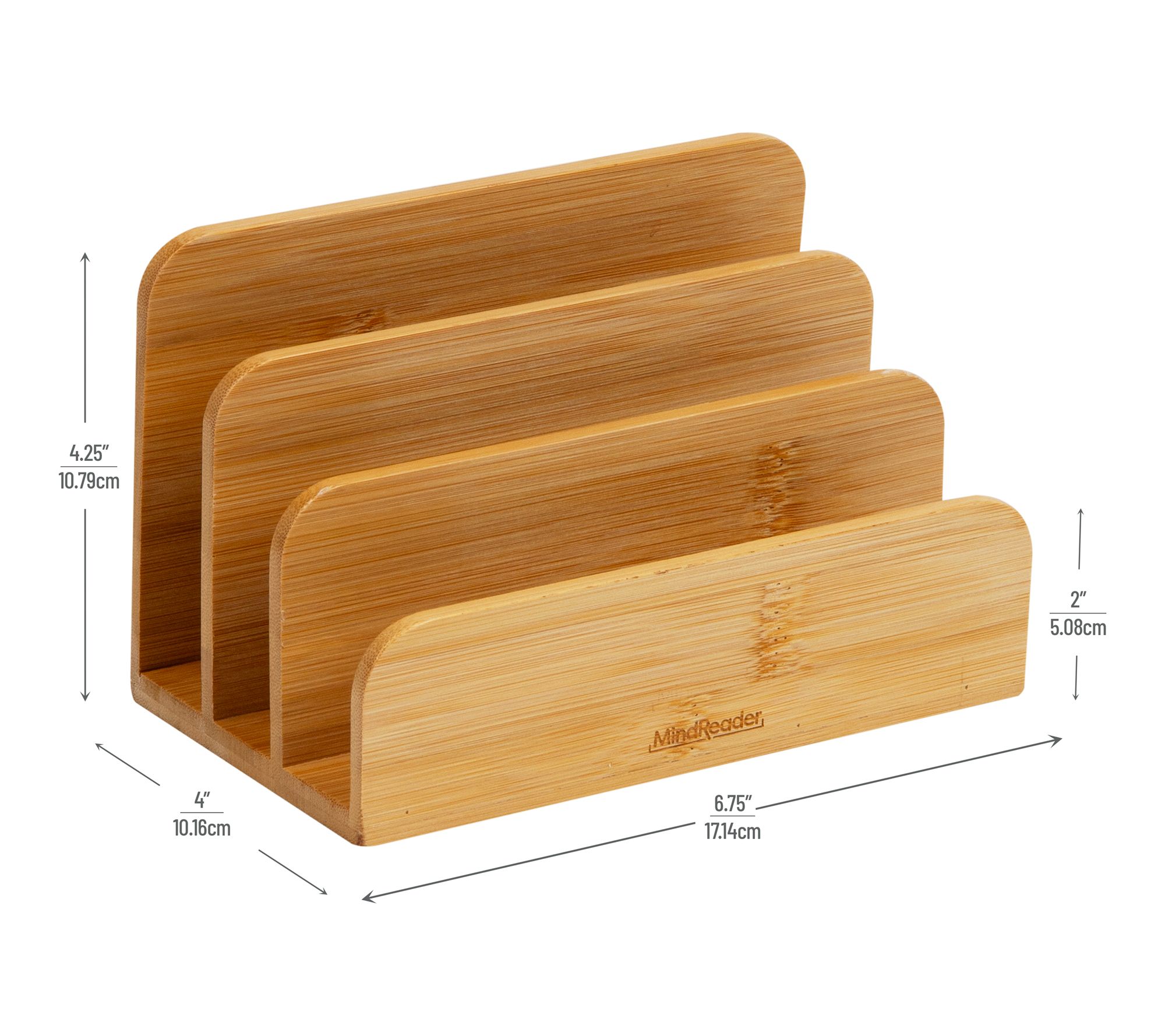 Ease the clutter and bring a fresh, organized vibe to your desk with this stylish mail sorter. The three-section desktop organizer creates designated spaces for bills, paperwork, or recipes -- all within arm's reach. Its compact, modern design blends seamlessly into your workspace, helping you keep everything neat and easily accessible. From Mind Reader.