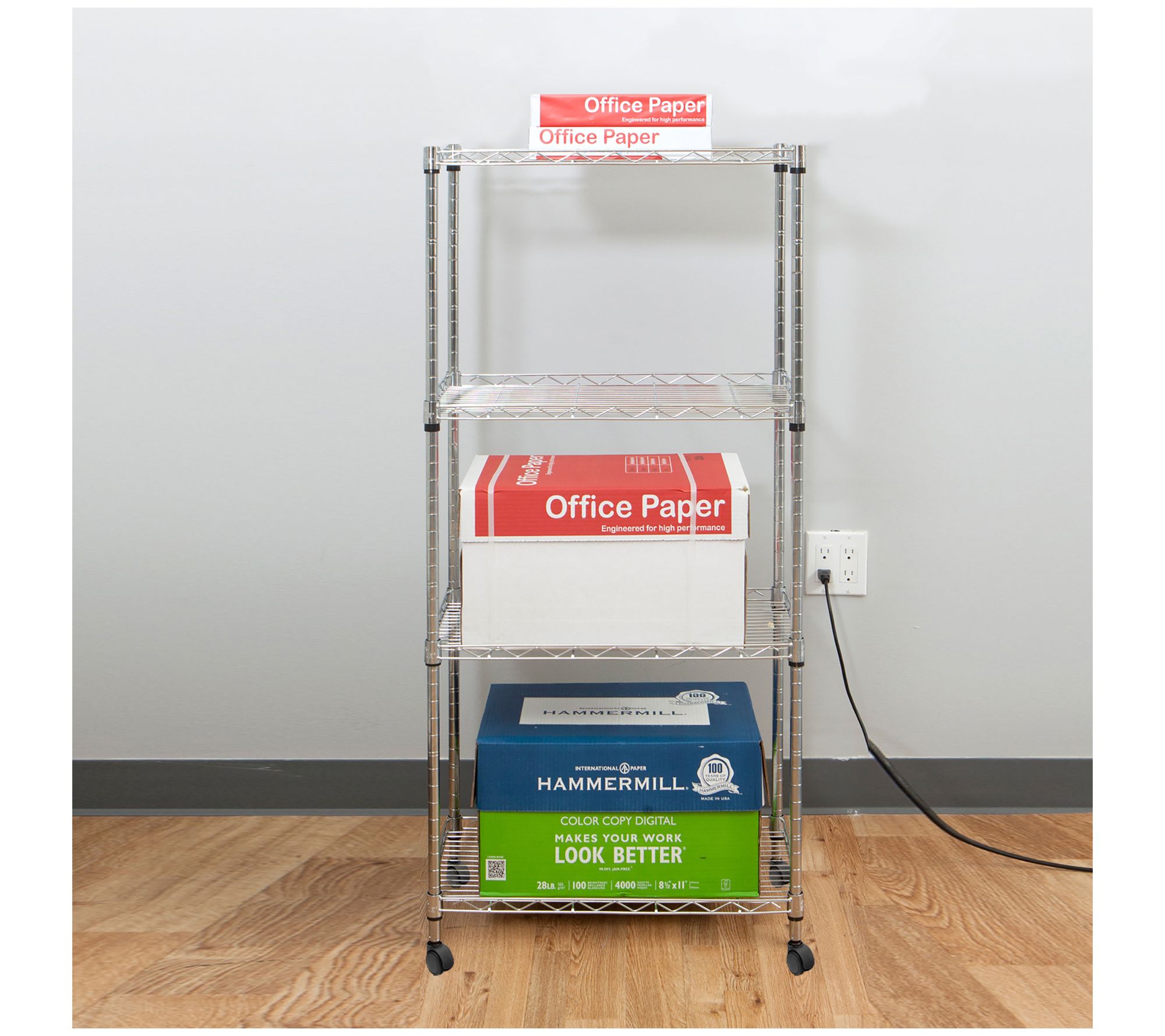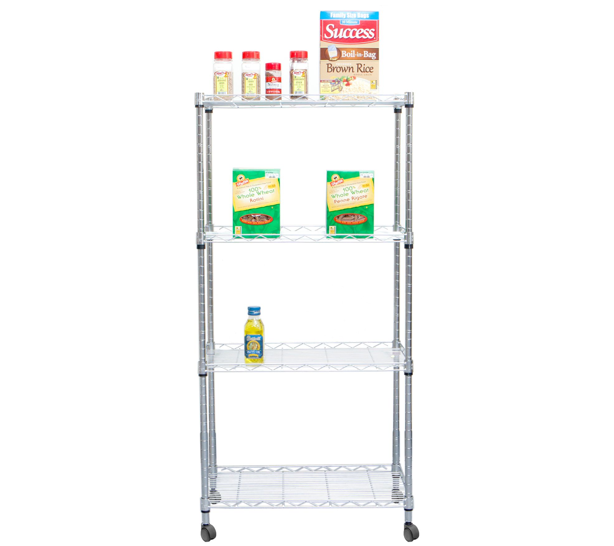 Pop-up storage where you need it most, this rolling rack includes four shelves to accommodate extra appliances, pantry items, craft supplies, and more. From Mind Reader.