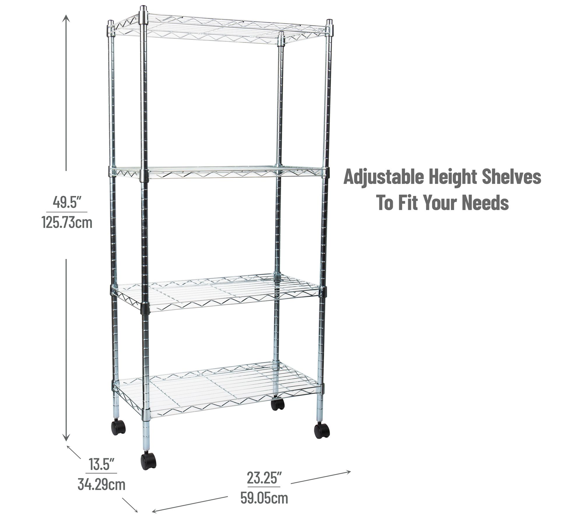 • Measures approximately 13.39" x 23.23" x 48.74"; 20-lb weight capacity per shelf; weighs 12.45 lbs